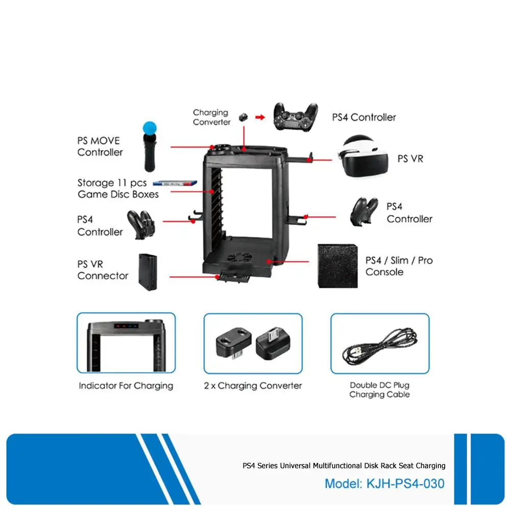 Для PS MOVE VR многофункциональная вертикальная подставка для зарядки, витрина, держатель для игрового диска, контроллер, зарядное устройство, охлаждающий вентилятор, кулер для PS4 Slim Pro