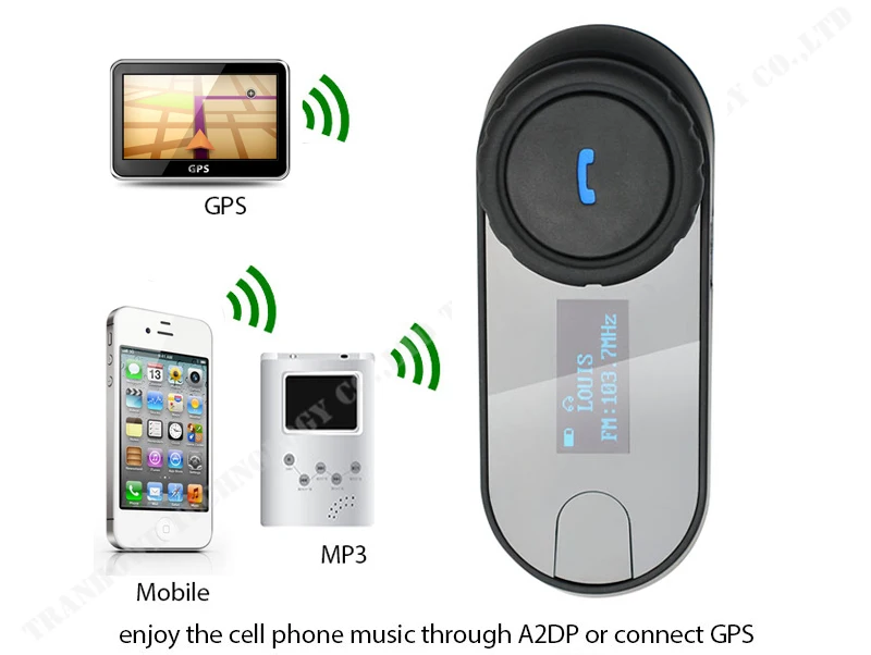 Это устройство позволяет байкерам получать голосовые инструкции GPS, общаться с пассажиром на заднем сиденье, совершать звонки на мобильный телефон и слушать музыку или mp3-плеер.