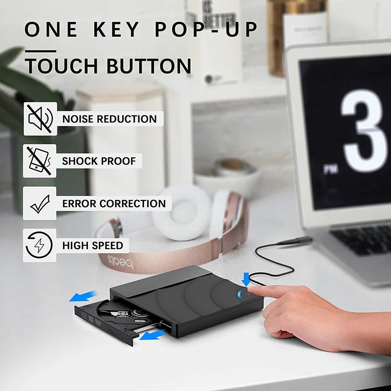 Интеллектуальная технология. Разработан с кнопкой извлечения, так что вам никогда не придется беспокоиться о том, что ваш диск застревает внутри этого внешнего CD/DVD диска. Технология медной сетки этого внешнего компонента, вы можете быть уверены в стабильной передаче данных