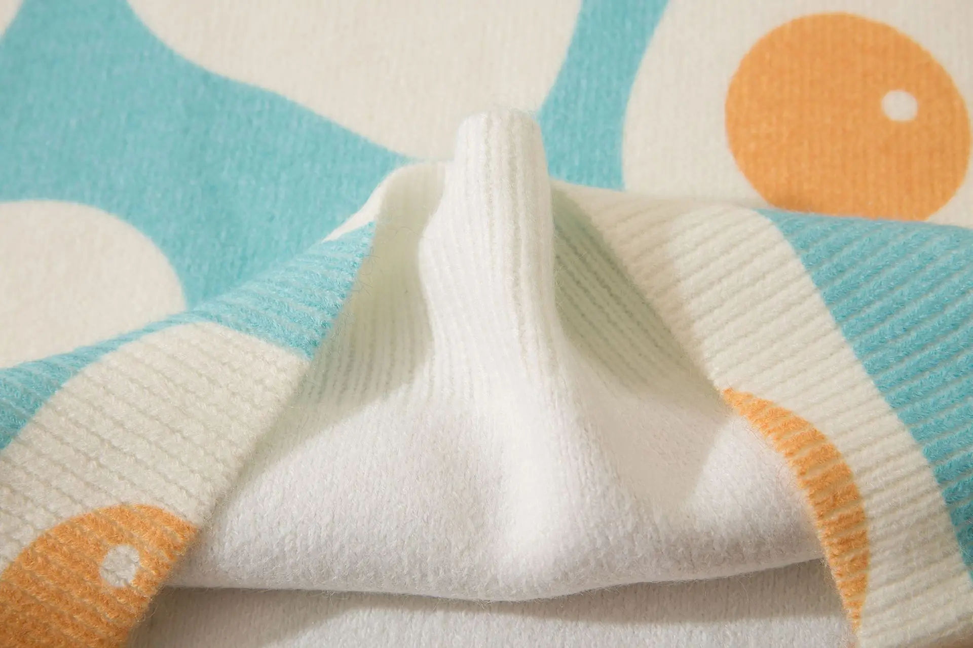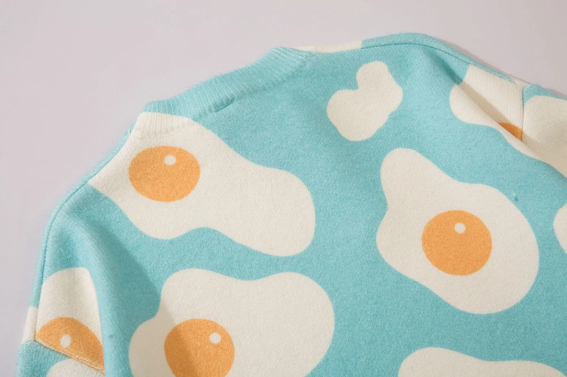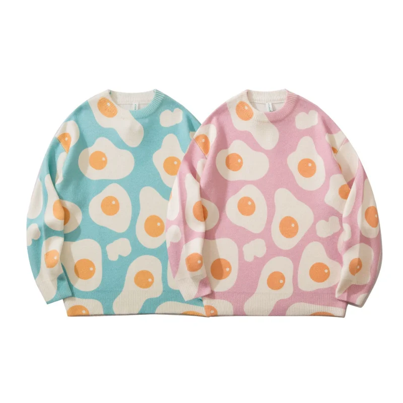 Отзывы о Корейский модный жаккардовый джемпер с принтом в виде яйца и граффити стильный