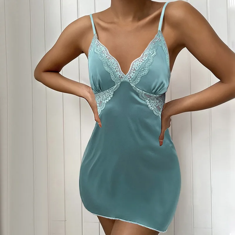 Особенности: тонкая Пижама для женщин; Летняя пикантная тонкая Ночная рубашка на подтяжках; Имитация шелковой юбки на подтяжках
