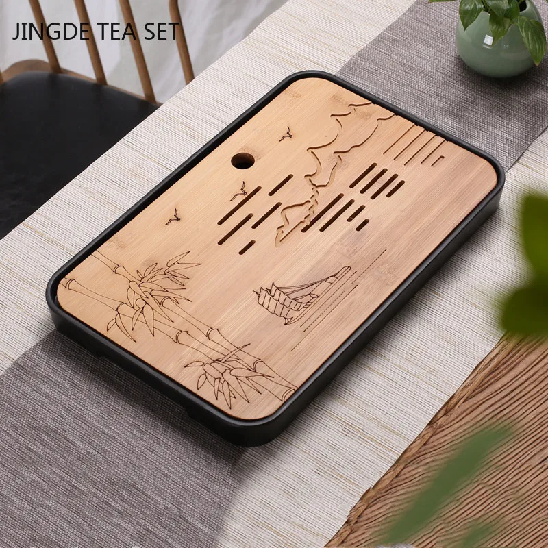 Отзывы о Бутиковый прямоугольный поднос для чая из натурального бамбука дренажный