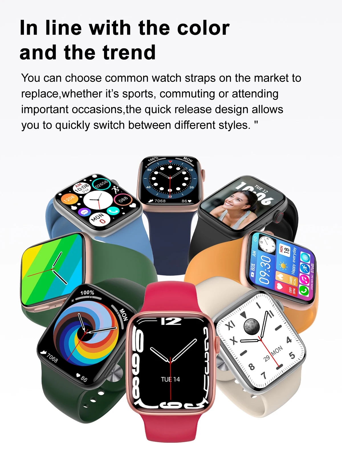 Множество предустановленных меню удовлетворяют разнообразную эстетику, просто Носите и Сочетайте в любом случае, который подходит вашему настроению. Поверните боковую кнопку, чтобы переключить страницы непосредственно или прокрутить вверх, вниз, влево и вправо, переключение циферблата более удобное и быстрое, чтобы предотвратить случайное касание.
