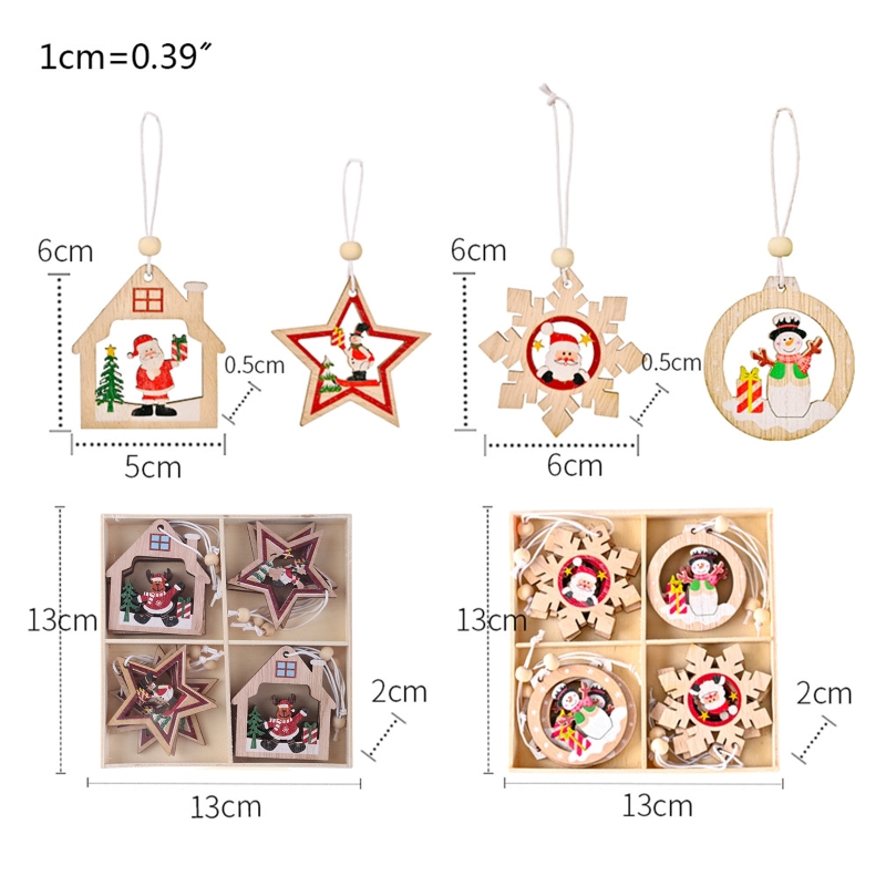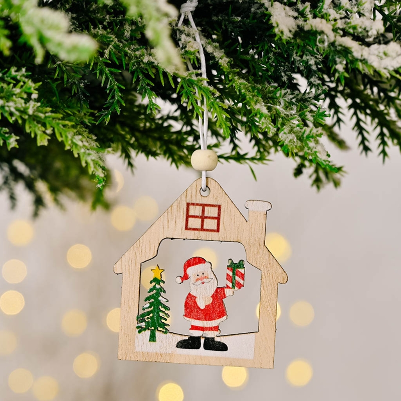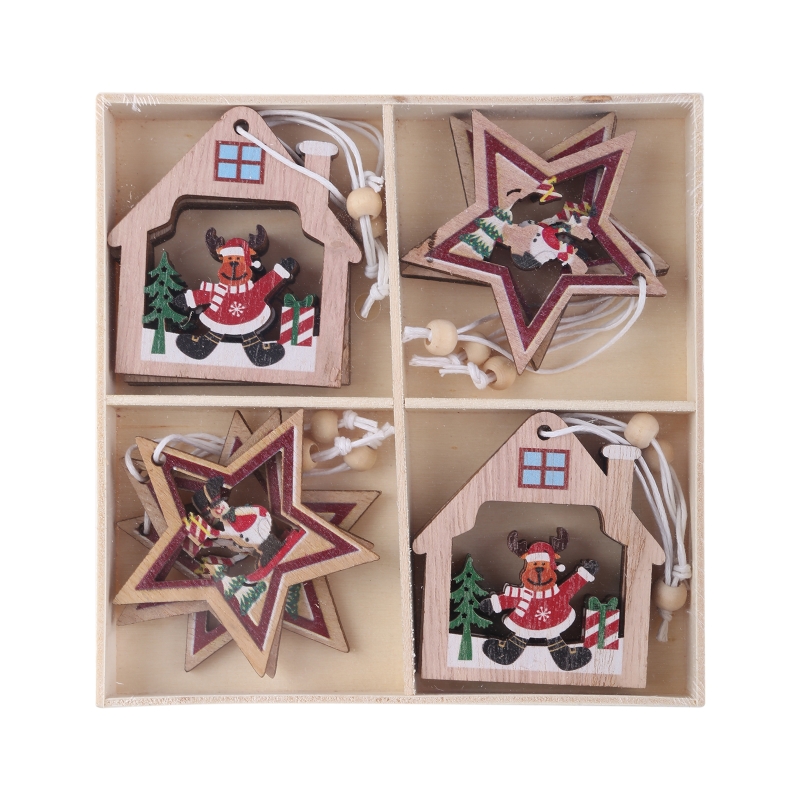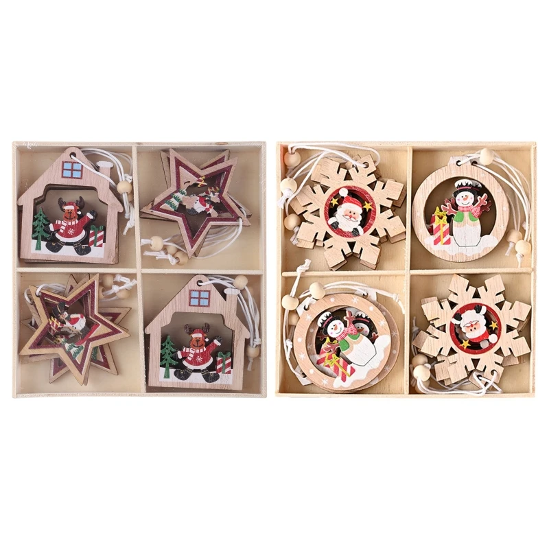 41XB 12 шт. набор украшений на рождественскую елку, Деревянный Санта-Клаус, снеговик, звезда, дом, снежинка, подвесная подвеска, рождественские, домашние вечерние коробки для дверейOOTDTY