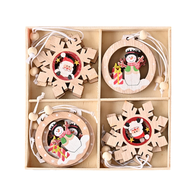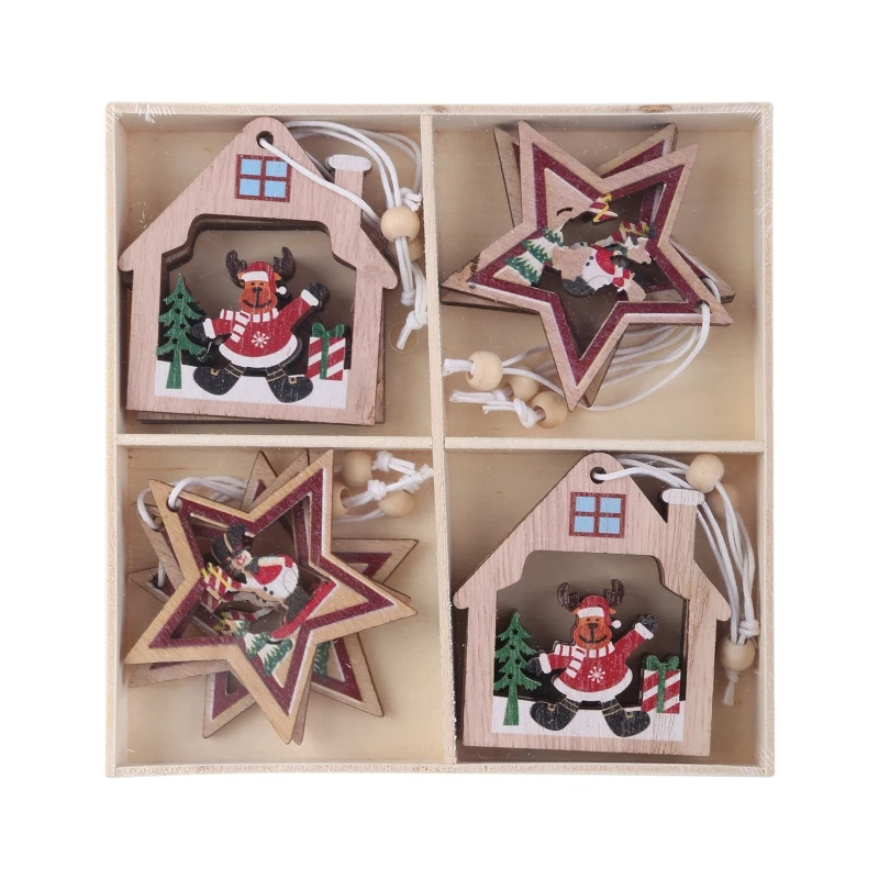 Набор рождественских украшений: 2 стиля на выбор: 6 шт. дома + 6 шт. звезд или 6 шт. снежинки + 6 шт. круглых подвесок, в деревянной коробке для хранения.