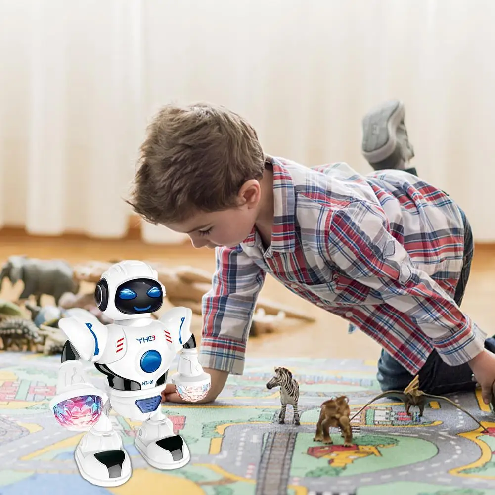 Забавный робот для танцев, Детский Электрический Универсальный светильник, музыкальная модель, игрушкиСлучайная универсальная ходьба, фонарь, классная музыка