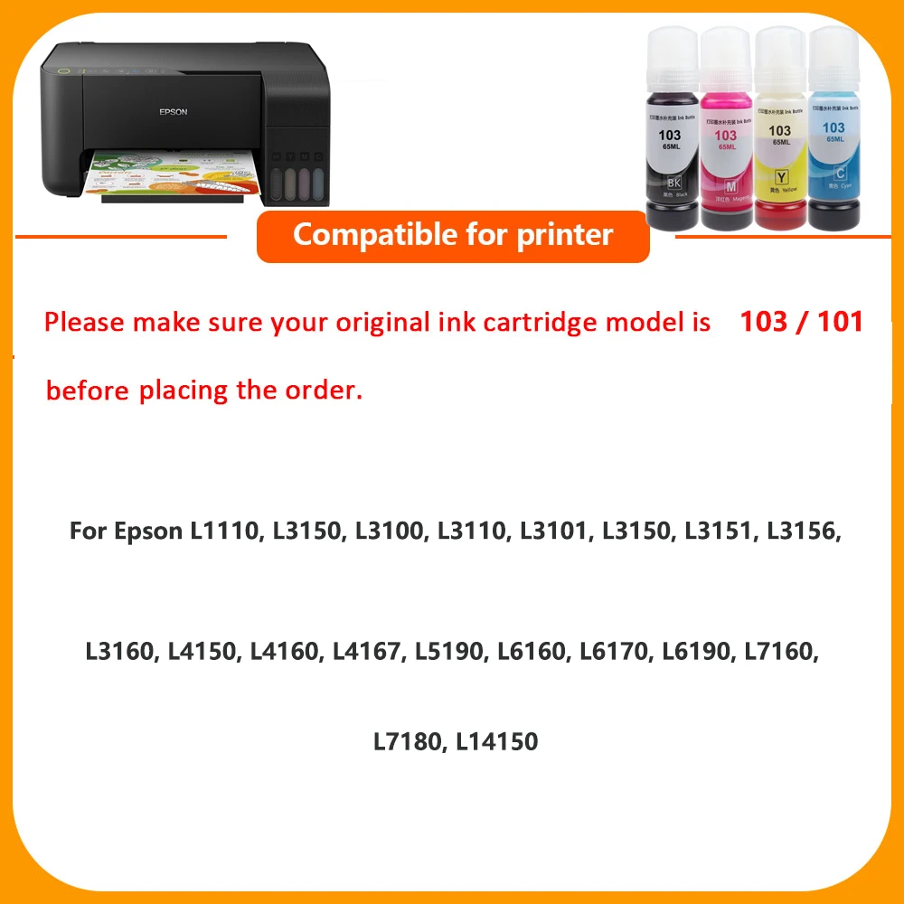 Совместимость для Epson 103 для Epson 101 L3100 чернил, L3101 чернил, L3110 чернил, L3150 чернил, L3151 чернил, L3156 чернил, L3160 чернил, L5190 чернил