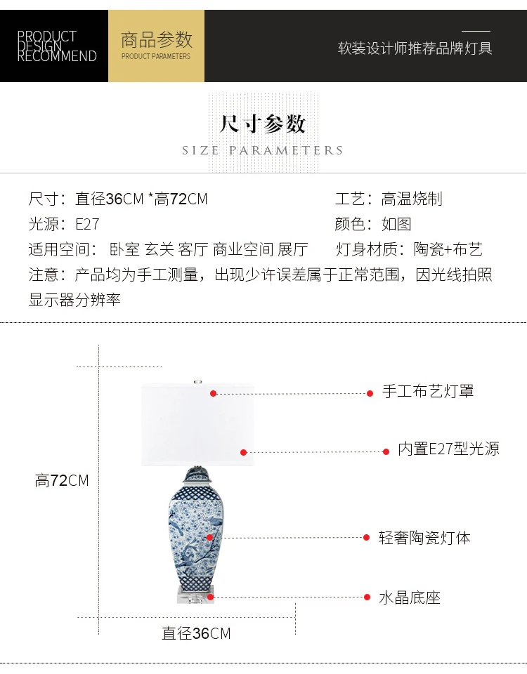 Отзывы о Новая китайская прикроватная сине-белая фарфоровая настольная лампа для спальни