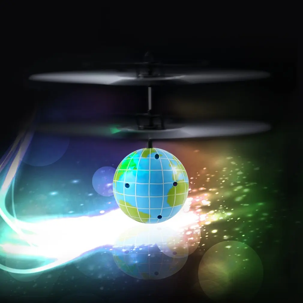 Яркий цветной светильник делает летающий шар более красивым и красочным.