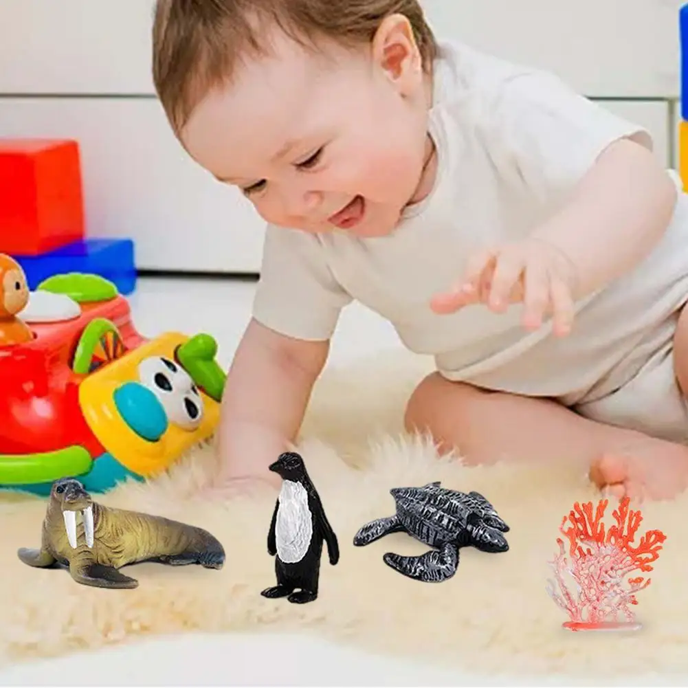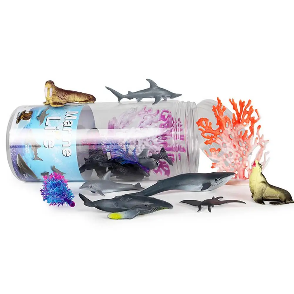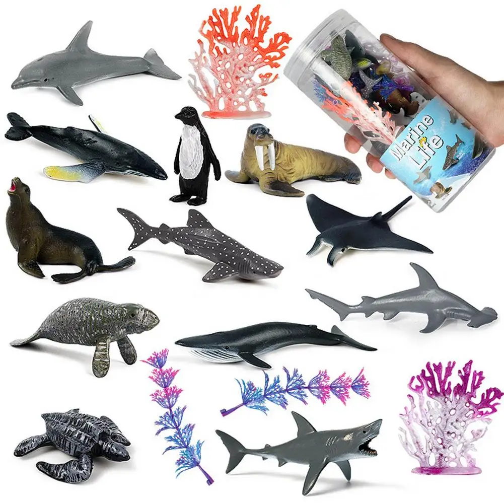 Особенности:1. Содержит 12 морских животных, которые являются горбатыми китами, русскими, китами, акулами, пингвинами, дельфинами, манатами, морскими львами, черепашками, водорослями и кораллами для изучения морских животных.