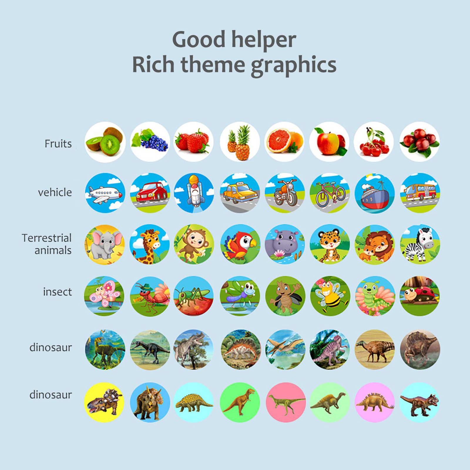 - Детский слайд-проектор: В отличие от большинства проекторов на рынке, наши проекторы имеют больше изображений и более яркие цвета. 56 различных фотографий и 7 групп тем (поставляется случайным образом с различными тематическими видео), просто поверните голову объектива, чтобы сфокусироваться, пусть ваш ребенок войдет в волшебный мир животных и восприятие растений!