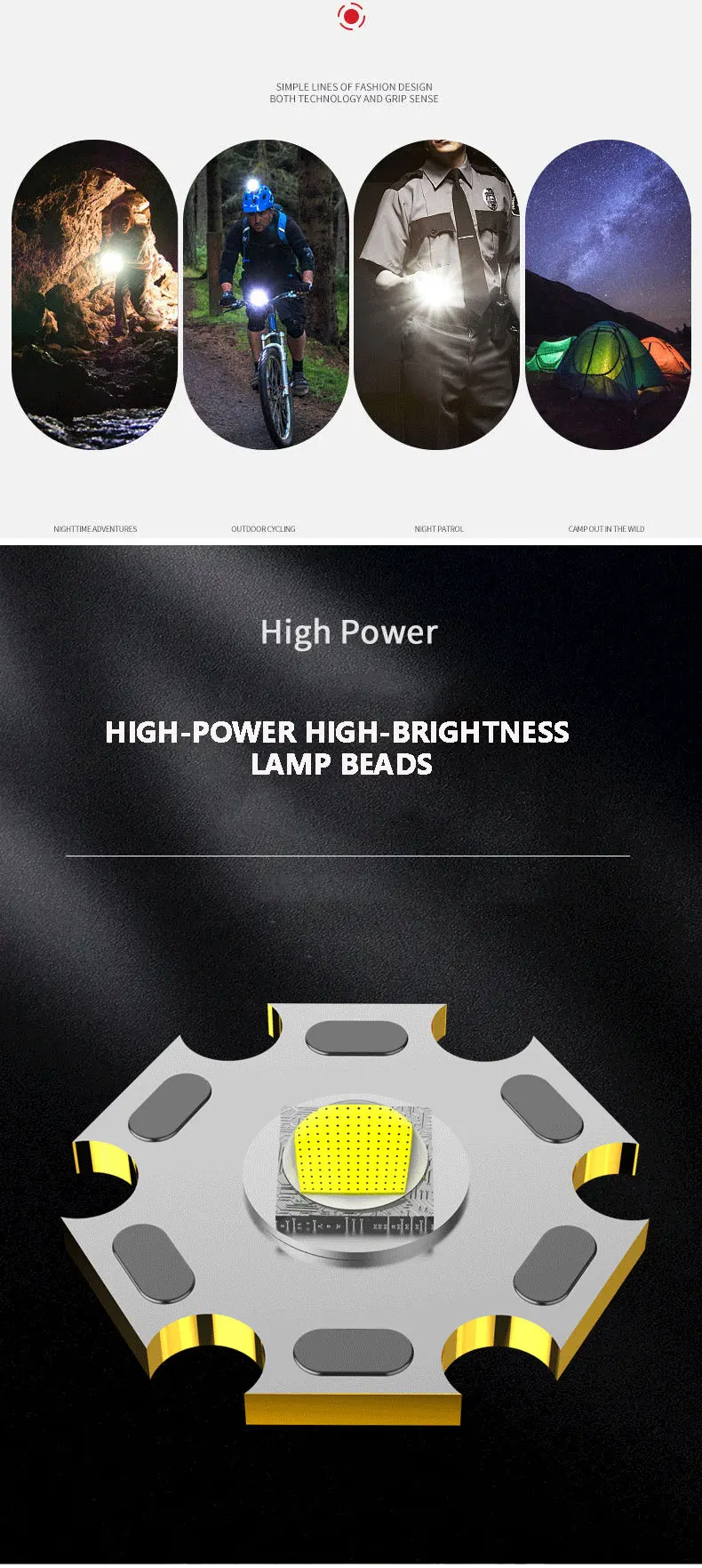 С использованием качественного синтетического пластика, прочный, жесткий, не легко повреждается, и светильник вес, передняя 7 светодиодный точечные лампы яркость очень высокая, легко освещения около 150 метров. Оснащен COB боковой светильник, который может использоваться как прожектор светильник.
