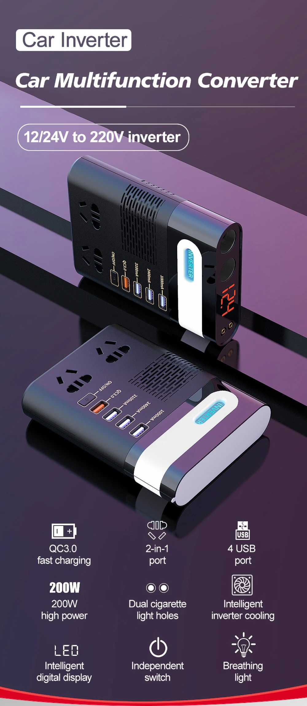 Отзывы о 200 Вт USB автомобильное зарядное устройство инвертор 12 В 24 220 преобразователь
