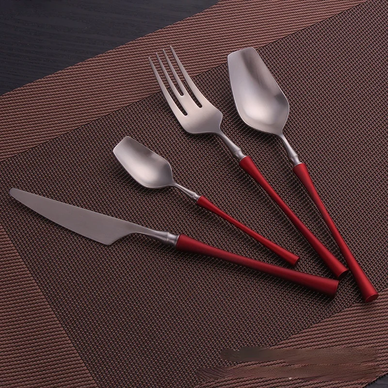 Отзывы о Набор матовых столовых приборов набор толстых красное серебро вилка ложка ножи