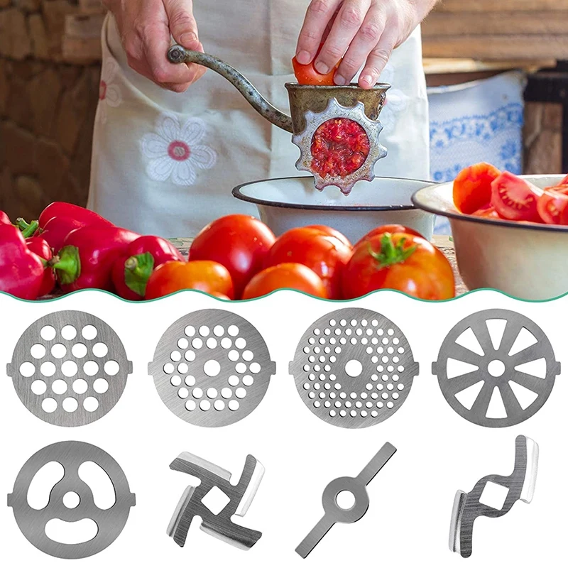 5 дисков для мясорубки в 5 различных стилях, 4 лезвия для мясорубки в 2 различных формах, держатель для колбасы. Аксессуары для мясорубки подходят практически всем размерам 55 мм мясорубки и мясорубки, центральное отверстие 7 мм, подходит для размера 5 миксер и Мясорубка. И держатель колбасы может предотвратить блокировку машины.