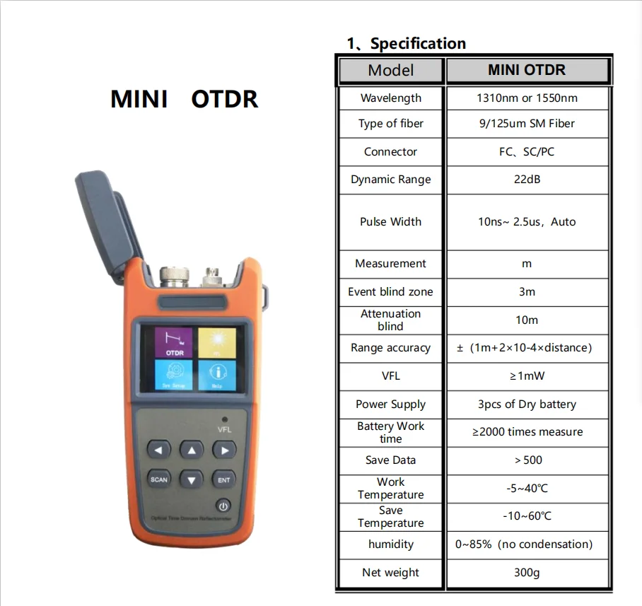 -1 x JW3305A mini OTDR