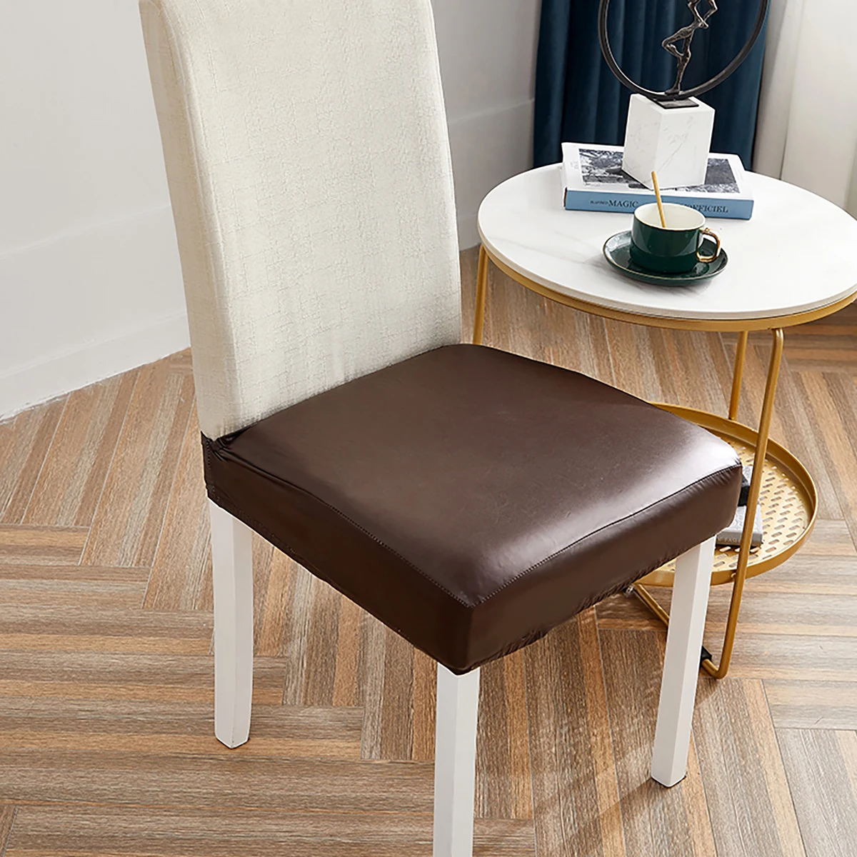 Подходящий чехол для кресла-идеальный способ придать вашему обеденному стулу новый вид, который добавит стиля и элегантности вашей гостиной. ВГладкая искусственная кожаМатериал изготовлен из спандекса и растягивается, чтобы создать бесшовный вид, который позволит вашей мебели снова почувствовать себя совершенно новым.