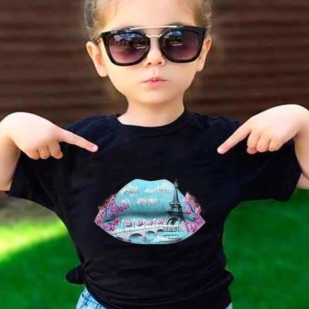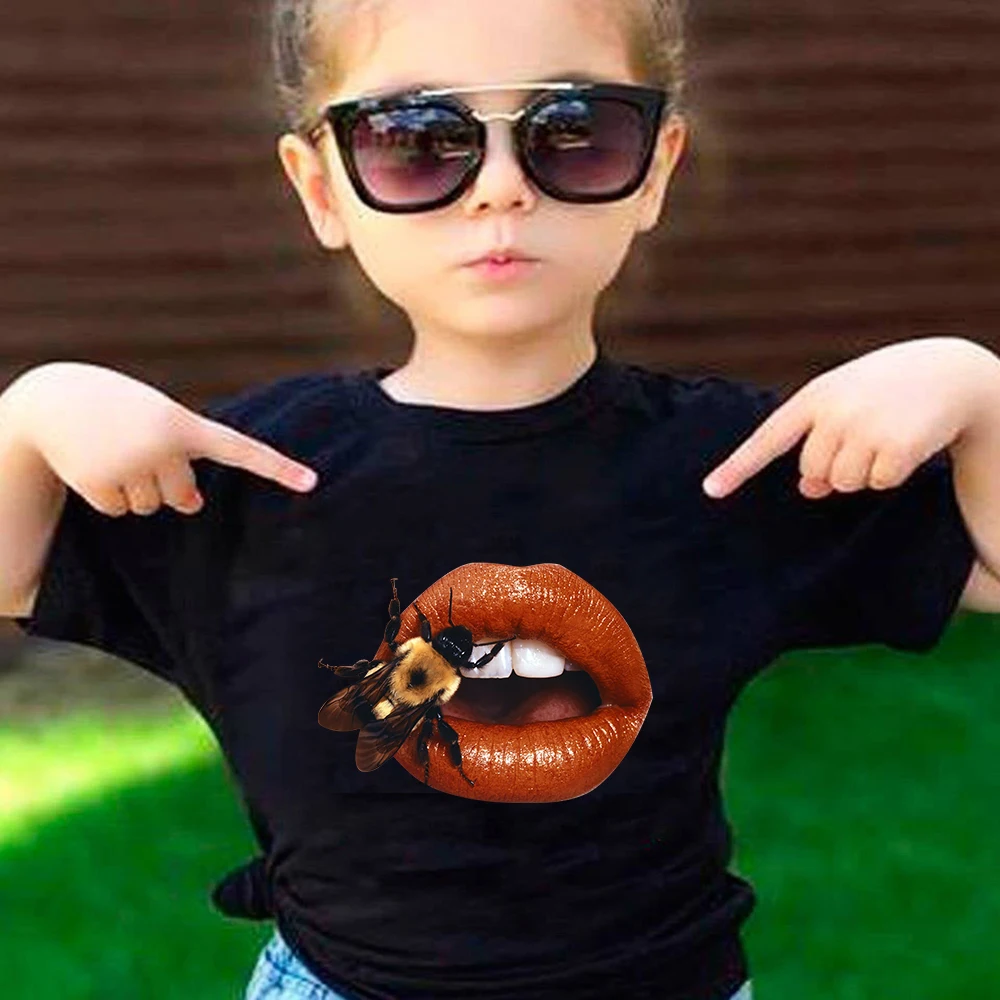 Отзывы о Европейская мода новинка Детская футболка с рисунком губ и покера уличная одежда