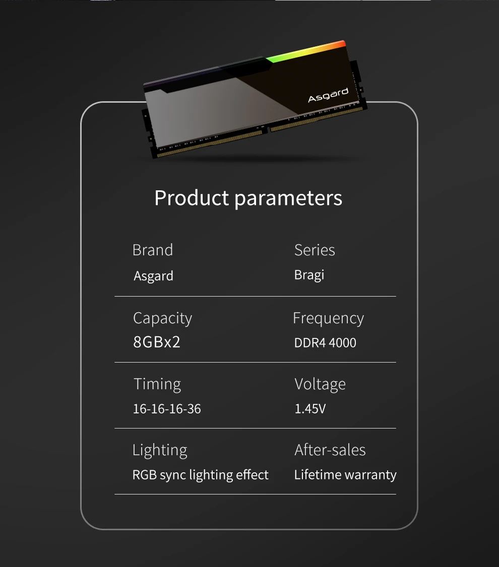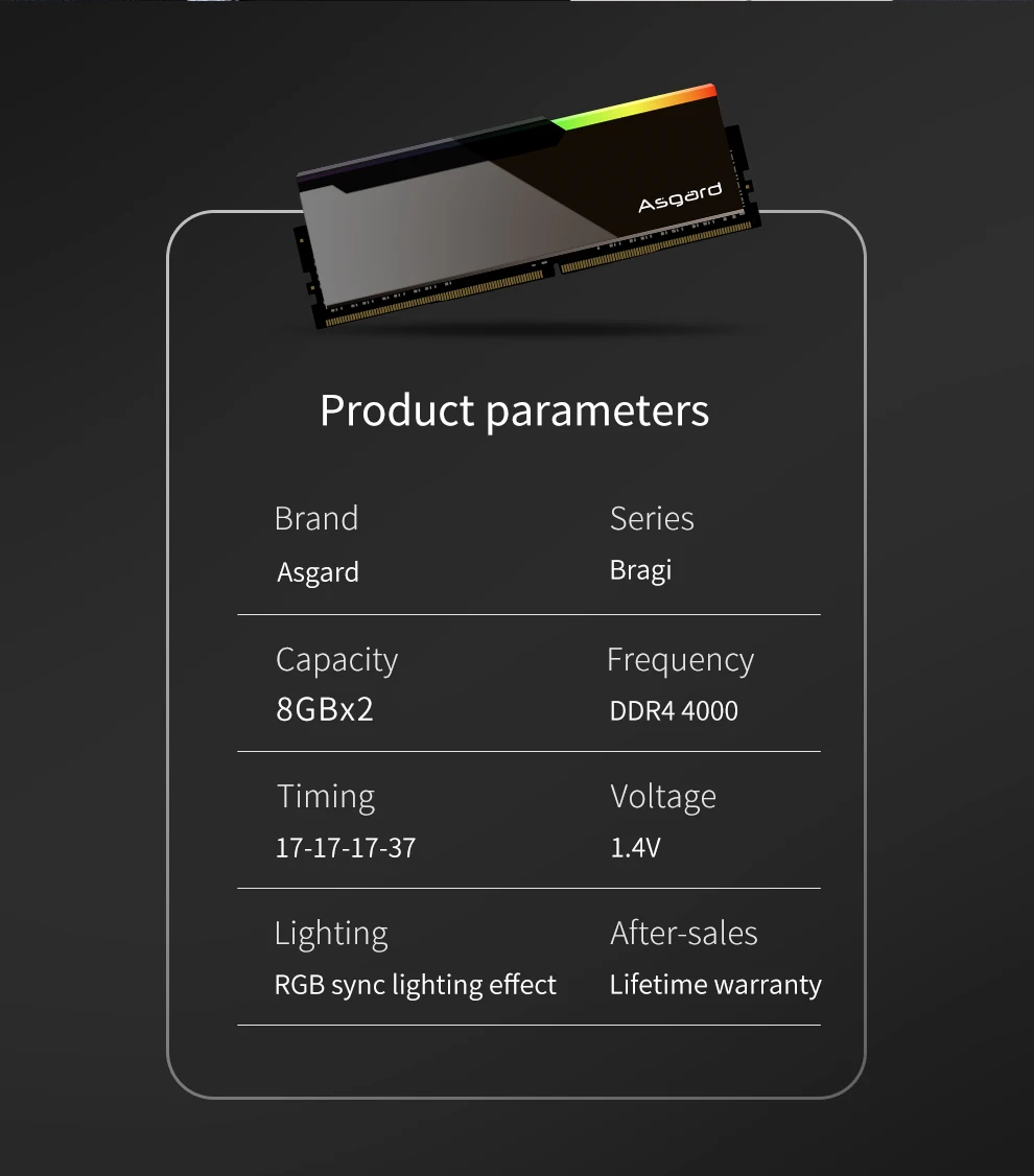 Asgard Bragi V3 серии память 8GBx2 4000 МГц зеркальная конструкция RGB RAM новое поступление