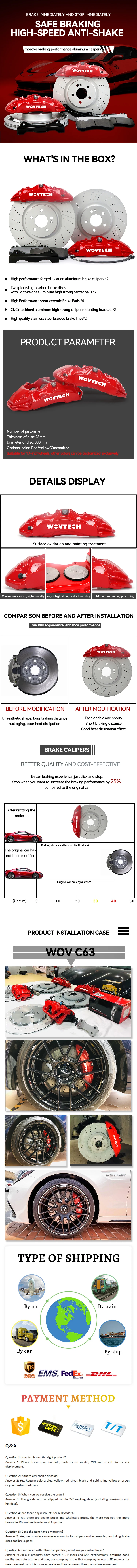 Отзывы о Большая тормозная система WOVTECH C63 6pot большие суппорты с шлицевым диском 405*34 мм для
