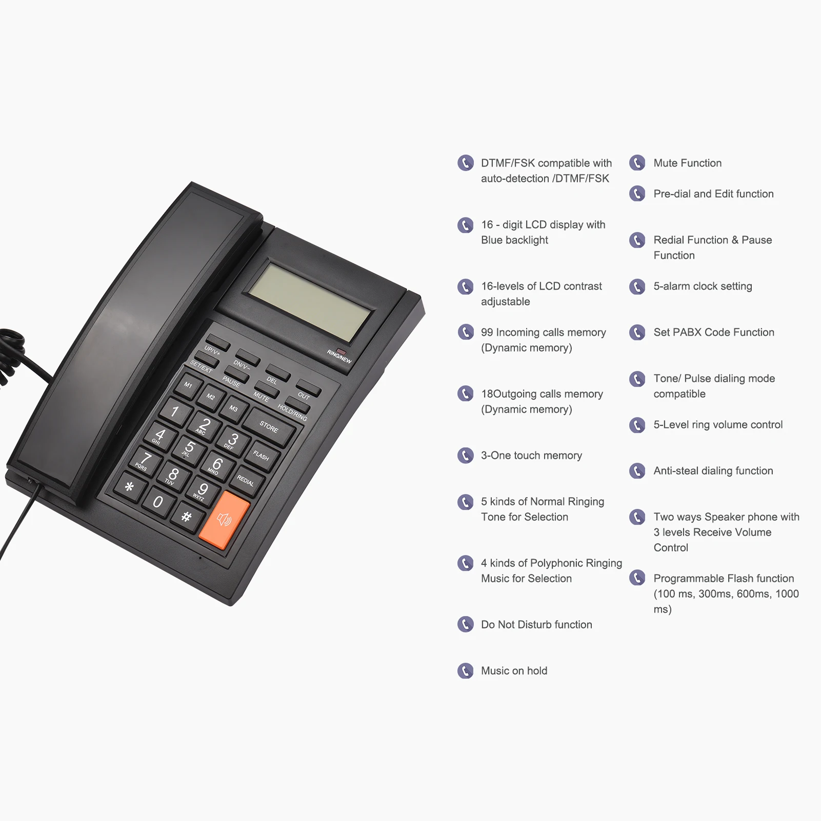 Отзывы о 16-значная Подсветка ЖК-экрана проводной телефон настольный стационарный