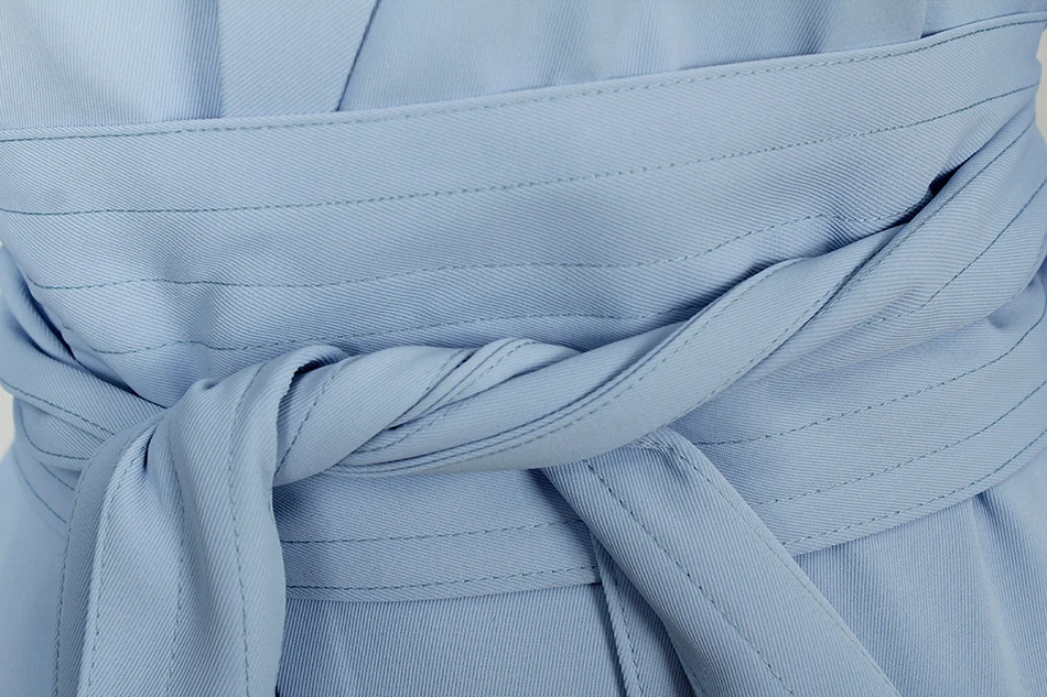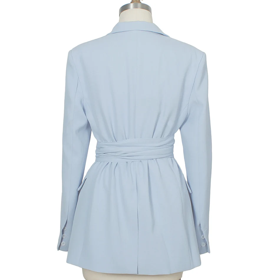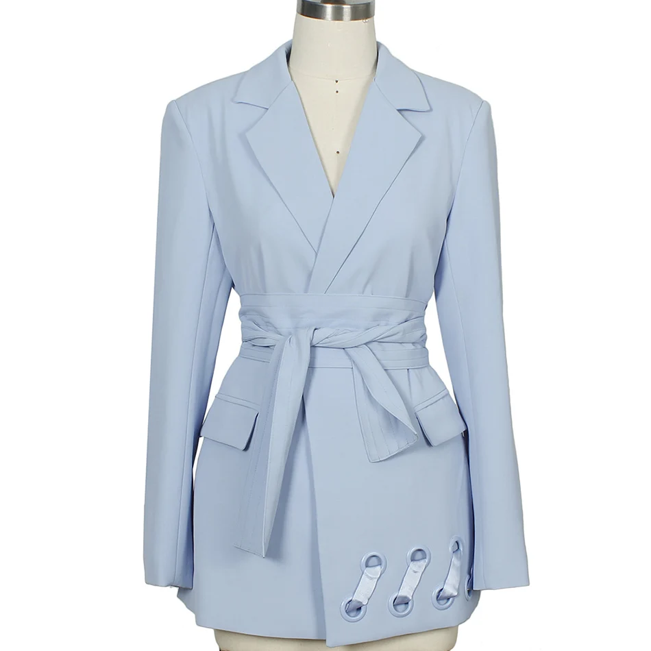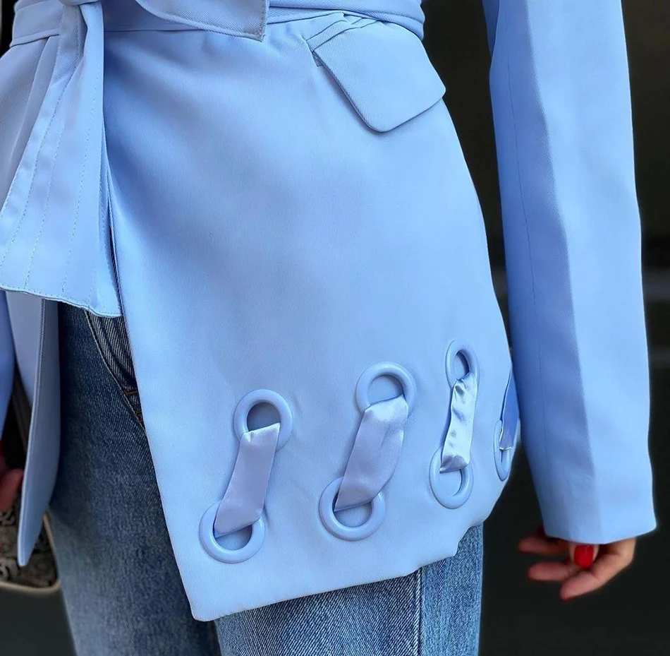 Отзывы о Женский блейзер с отложным воротником светло-голубой длинным рукавом и ремнем