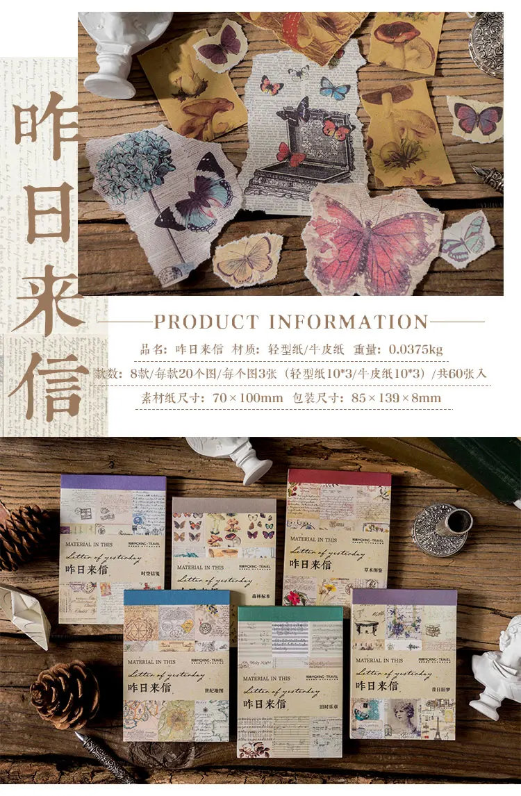 60 шт./компл. бабочка музыкальная Книга материал бумага мусор Журнал Планировщик для скрапбукинга винтажные декоративные поделки Сделай Сам бумага
