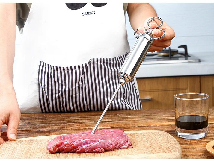 3. Сочная, вкусная еда: наш инжектор пищи является прочным и может повысить вкус индейки на День Благодарения/Рождество, стейка, свинины, ягненка, курицы, гуся, утки, Налейте рассол в домашнее мясо.