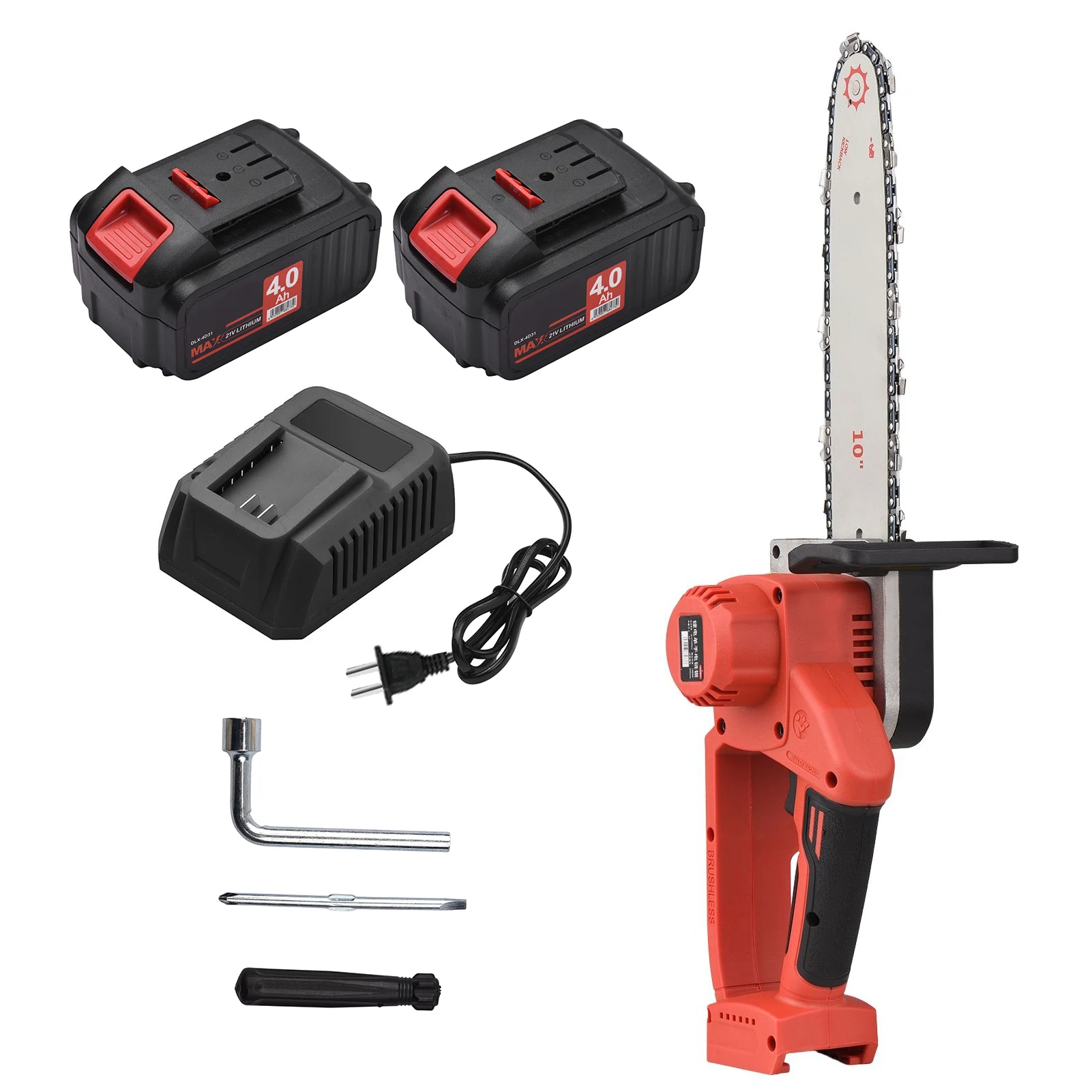 Бесщеточный двигатель, высокая производительность --Портативная Беспроводная электрическая пила для обрезки использует бесщеточный двигатель, который обеспечивает больше времени работы и повышает эффективность обрезки, а также его срок службы длиннее обычного мотора щетки, что значительно экономит затраты на техническое обслуживание из-за повреждения двигателя.