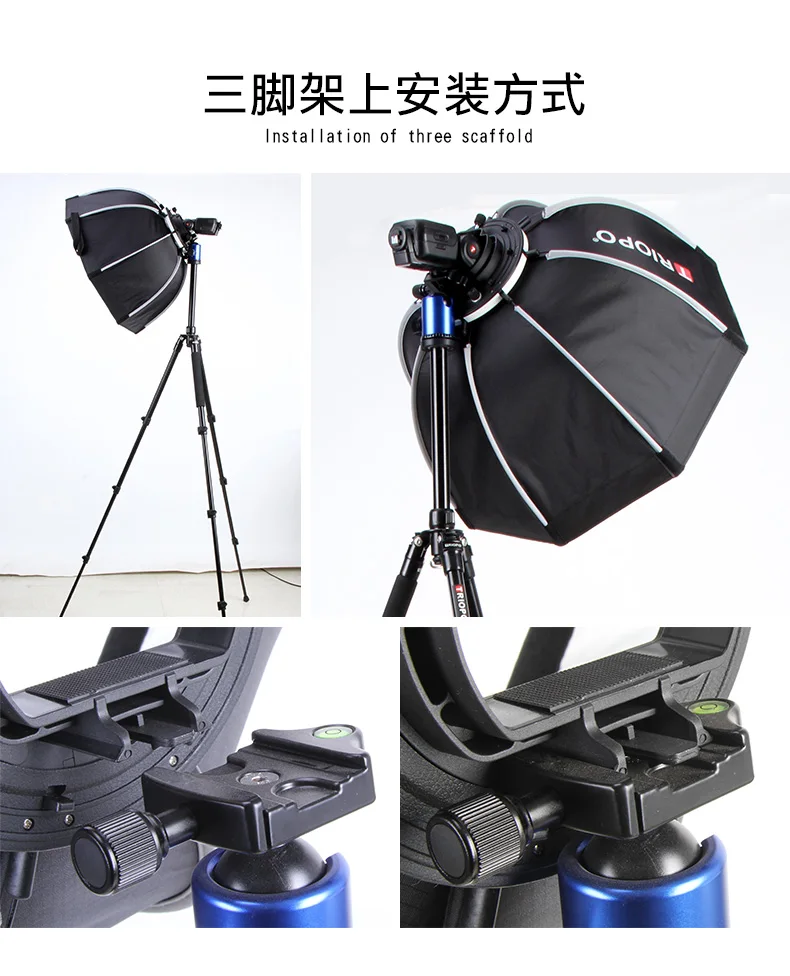 1. Внутри с отражающим серебром и поставляется с передним полупрозрачным диффузором, отлично подходит для speedlite, monolight, strobe или slave.