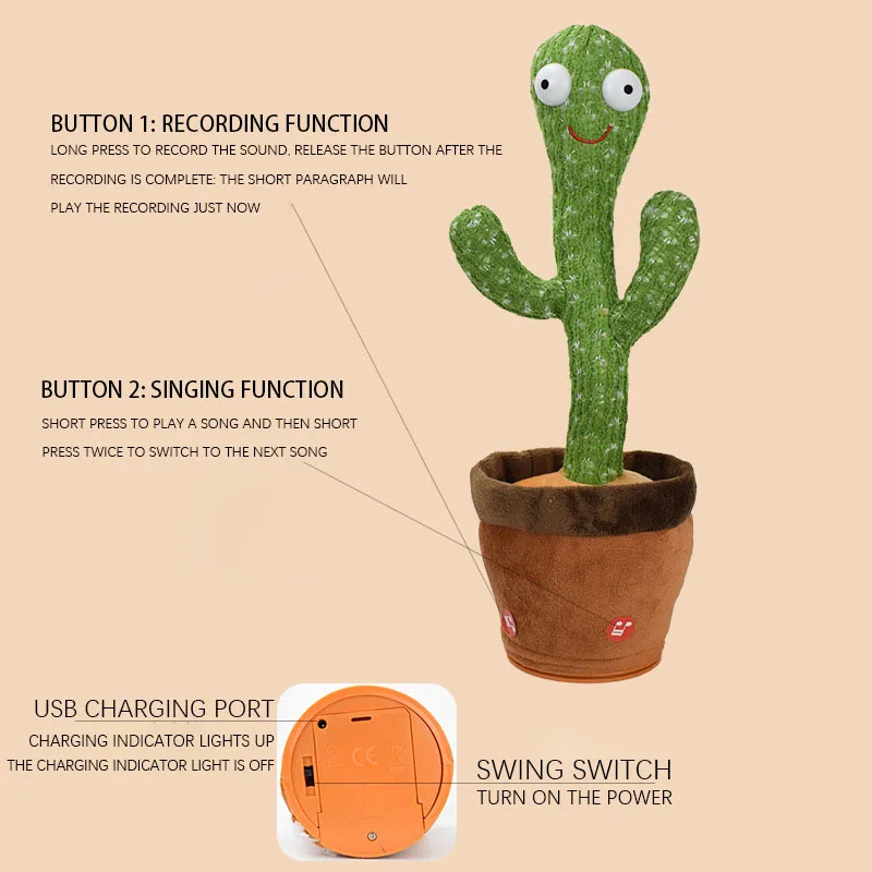 Отзывы о Плюшевая танцевальная игрушка-кактус 120 песен динамик USB зарядка репетиция