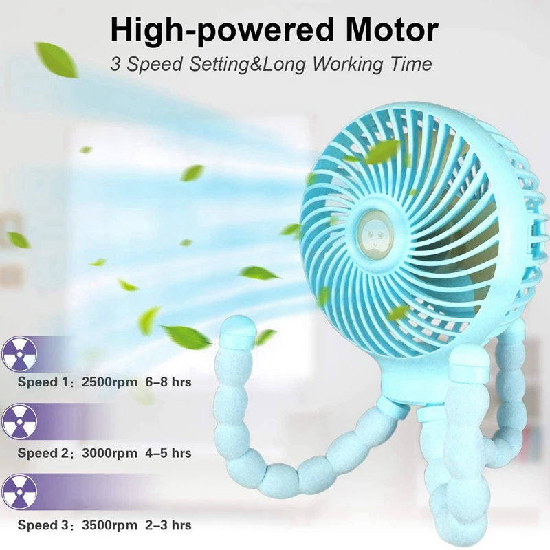 Сильный ветер и Ультра тихий-Этот мини-вентилятор построен с профессиональным высокопроизводительным бесщеточным двигателем с более быстрой скоростью, сильным ветром и низким уровнем шума (ниже 57 дБ). 3 регулируемые скорости ветра отвечают требованиям различных сред и изменений температуры.