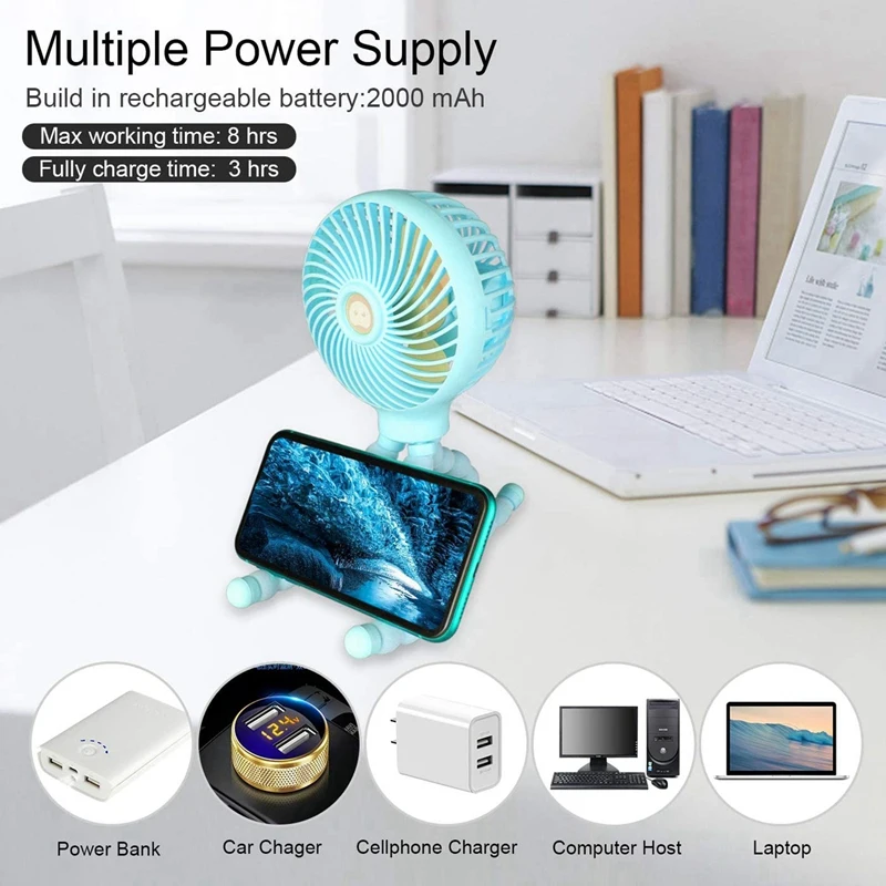 Штатив-Осьминог по сравнению с традиционным мини-вентилятором, этот маленький вентилятор с уникальным гибким дизайном штатива, вы можете согнуть любой угол, захватить его, обернуть его, выдержать его, сохранить его долговечным, гибкий и стабильный