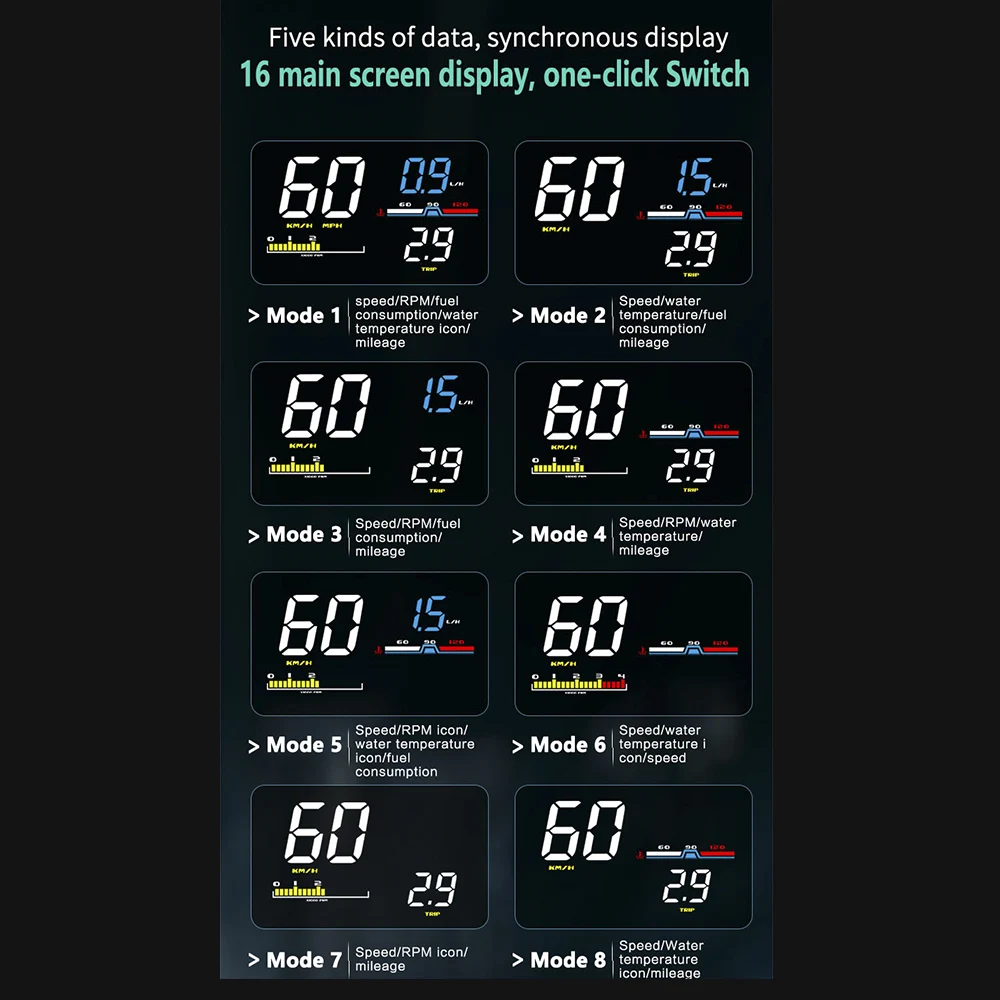 Скорость вождения, температура воды, напряжение батареи, скорость двигателя,