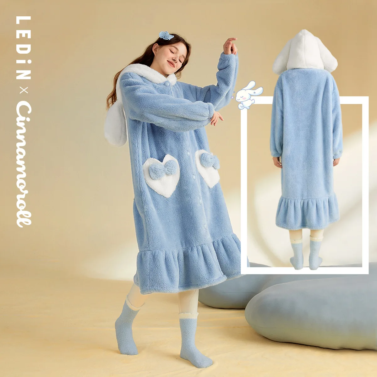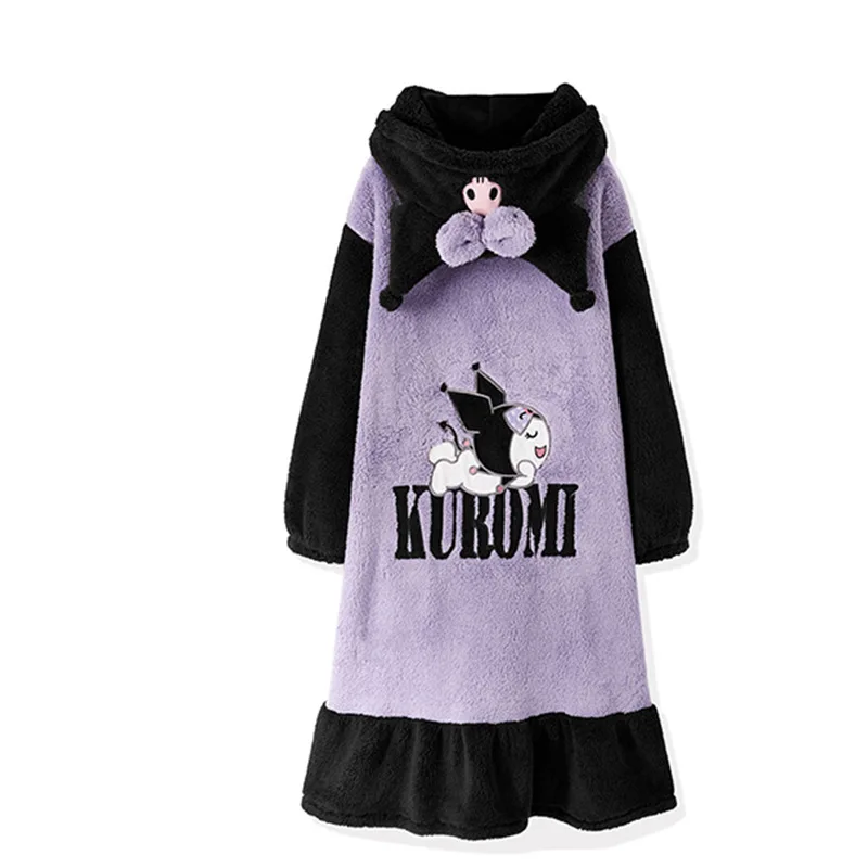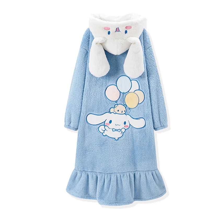 Отзывы о Новинка ночнушка Sanrio Cinnamoroll Kuromi зимняя Домашняя одежда из кораллового флиса