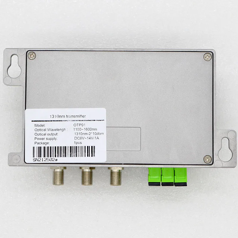 OTP01 1310nm передатчик с оптическим в специально разработан для CATV FTTH сети. Его Основной особенностью является низкое энергопотребление, двойной выходной оптический сигнал, с оптическим входом и ВЧ входом двумя способами, оптическая постоянная выходная мощность AGC, малый объем и высокая надежность. Использование корпуса из алюминиевого сплава, со встроенным оптическим управлением, компактная структура и внешний модульный источник питания делают установку и отладку очень удобными. Это идеальный продукт для построения сети FTTH CATV.