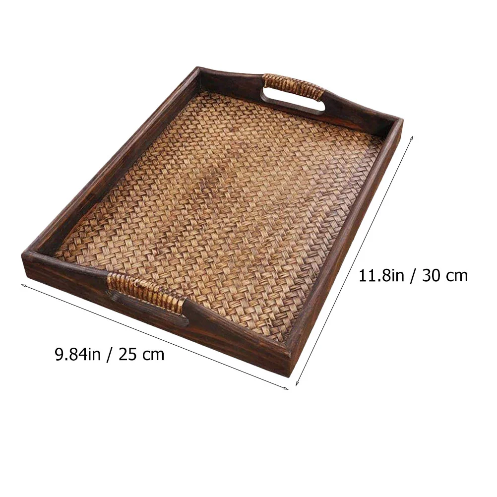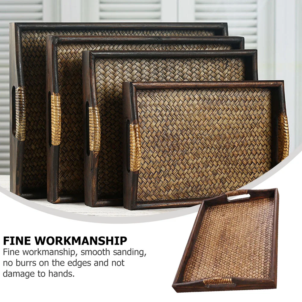 Отзывы о 1pc Retro Rectangular Tray Rattan Woven Simple Practical Tea Plate | Дом и сад