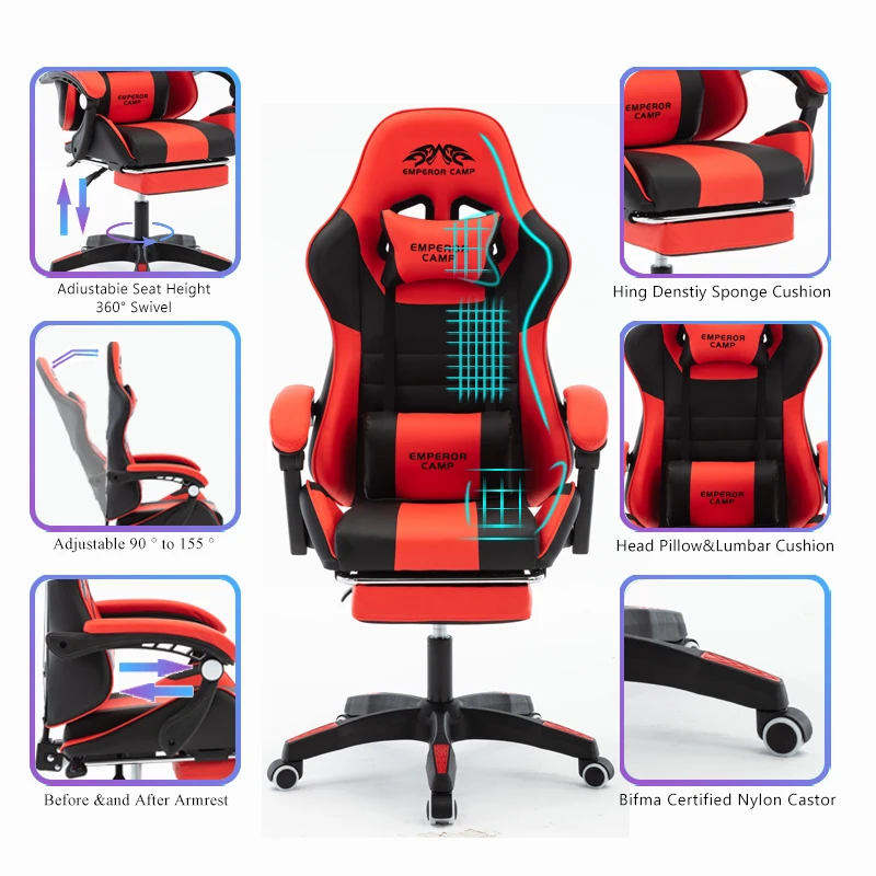 【Высокое качество материалов 】премиум из искусственной кожи, ПК игровой стул мягкий на ощупь и легко чистится. Крепкий и прочный 5 звезд предлагает Превосходная стабильность и долговечность, а также грузоподъемностью до 150 кг.