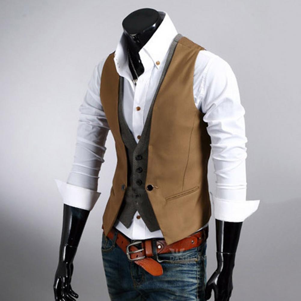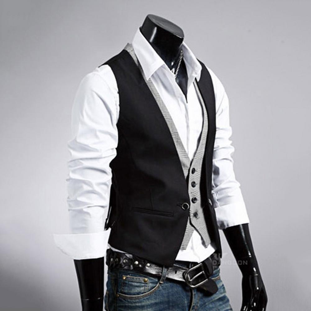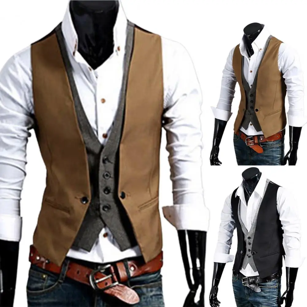 Однобортный костюм с v-образным вырезом, жилет, отличное мастерство, имитация двух частей, мужской жилет для делового костюма, рабочая одежда