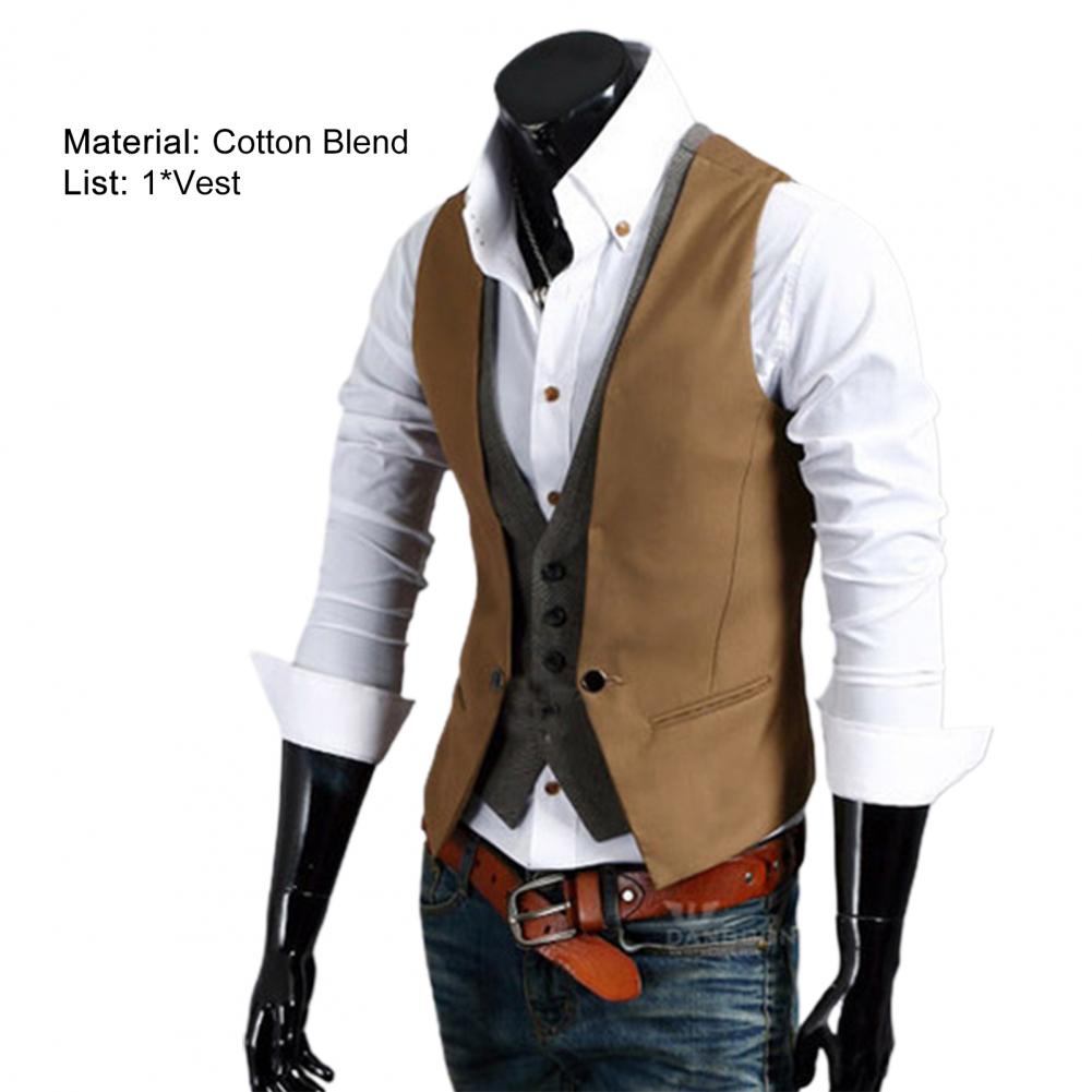 Превосходное мастерство и прочная хлопчатобумажная смесь ткани Мужской приталенный деловой костюм жилет принесет вам комфорт.