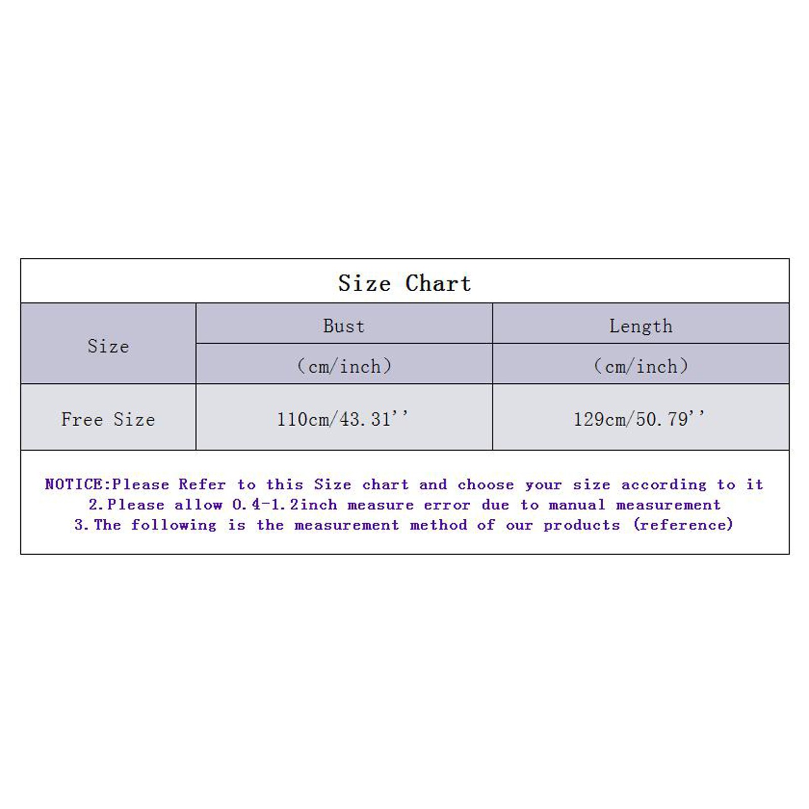 | Свободный размер | 110 см/43,31'' | 129 см/50,79'' |