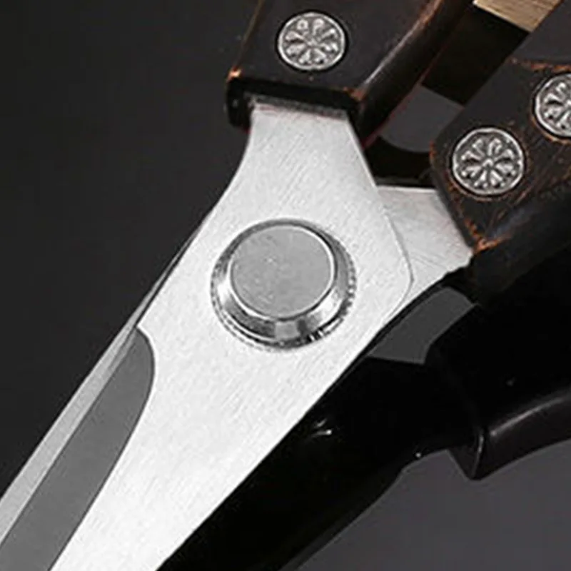 [Удобная эргономичная ручка для рыбьей кости] эргономичная ручка для рыбной кости из нержавеющей стали для кухонных ножниц изготовлена из высококачественной латуни, которая удобна и не скользит. Более того, рукоятка кухонных ножниц большая, и она подходит как для левых, так и для правых рук. Эргономичный дизайн «елочка» делает его более удобным для хранения при резке ингредиентов. Восемь усиленных заклепок глубоко встроены в ручку, которая является прочной и прочной.