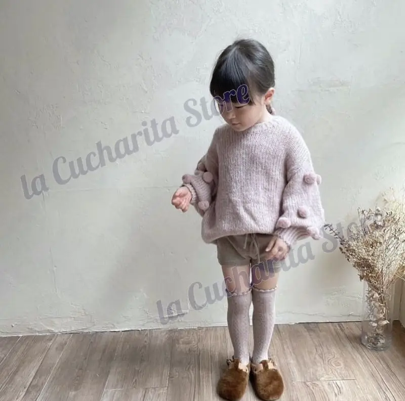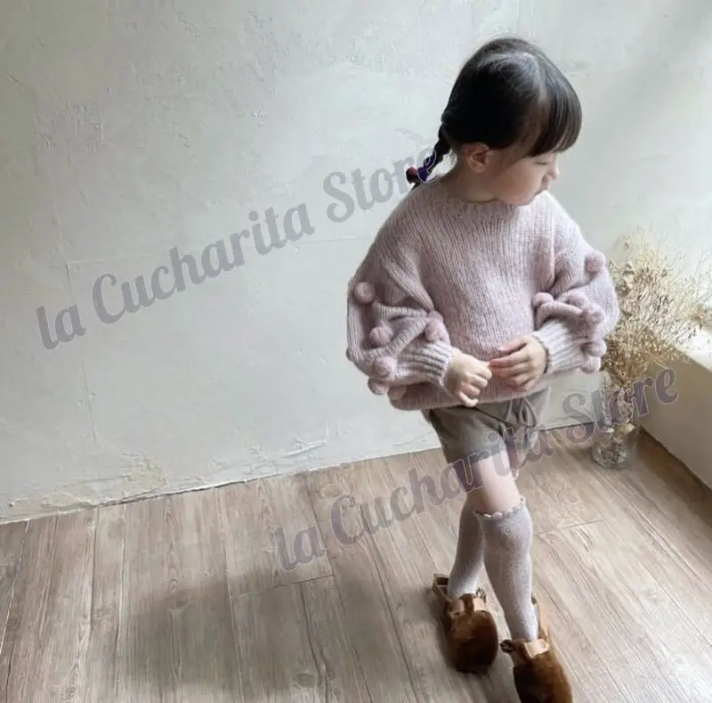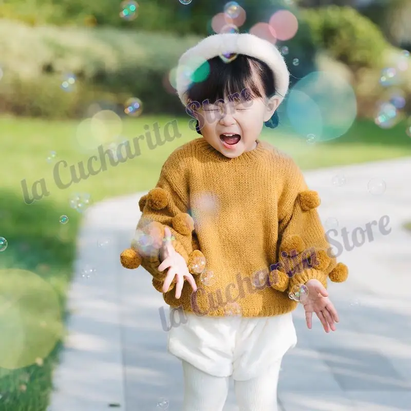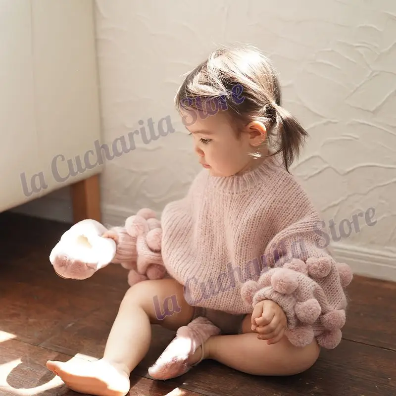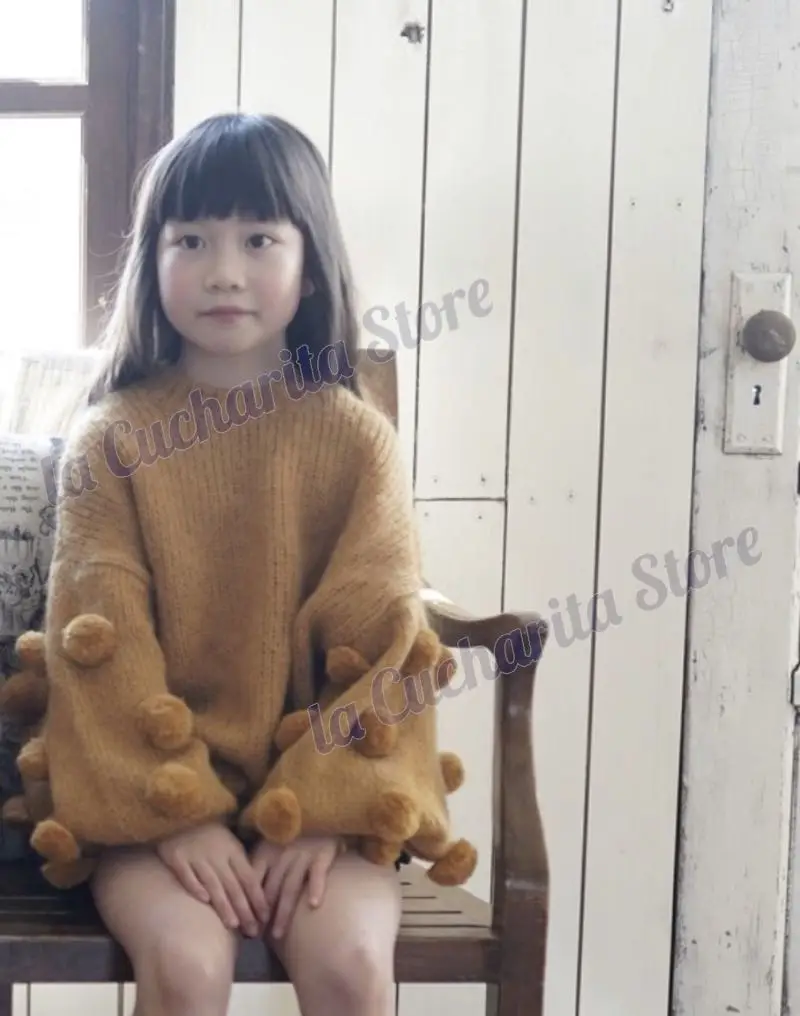 Отзывы о Зимний свитер для девочек с помпоном раньше мохеровая Шерстяная трикотажная