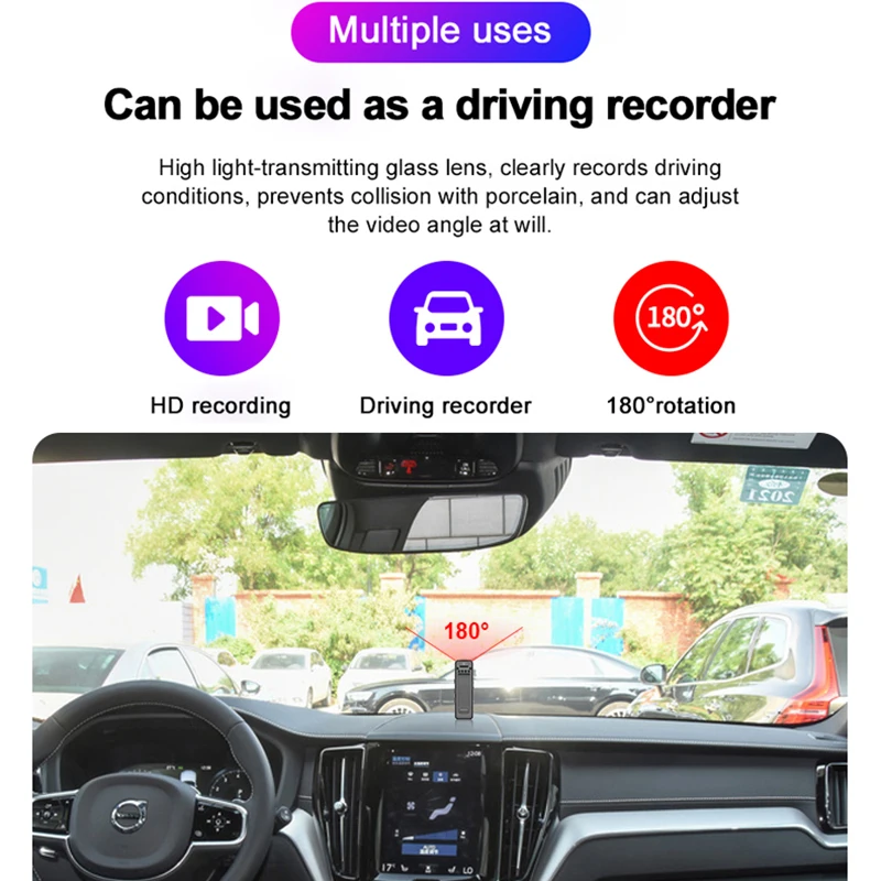 Высокий светильник-передающая стеклянная линза, четкая запись условий вождения, предотвращает столкновение с фарфором и может регулировать угол видео по желанию.