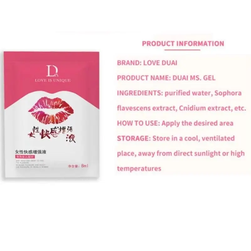 Материал: женский гель oragsm Размер: 8 мл * 1 шт.Тип изделия: смазочные материалы Эффект 1: смазочные материалы, секс-продукты для взрослых, возбуждающие для женщин Эффект 2: Женская возбуждающая Сексуальная жидкость Количество: 1 шт. 3 шт./лот Описание товара Способ использования: Откройте мешок, выдавите необходимое количество жидкости и нанесите желаемую область. Способ хранения: хранить в прохладном и проветриваемом месте, избегать прямых солнечных лучей или высокой температуры. Примечание: 1. Этот продукт предназначен для внешнего использования, не принимайте его в устной форме. 2. Не используйте, если пораженный участок поврежден или вызывает аллергию. 3. Не входите в глаза, пожалуйста, немедленно промойте водой, если вы чувствуете себя плохо, обратитесь за медицинской помощью. 4. Не помещайте детей в зону легкого доступа для предотвращения случайного приема пищи. 5. Этот продукт не имеет противозачаточных средств и предотвращает заболевания, передаваемые половым путем. 6. Если во время использования возникает дискомфорт, пожалуйста, прекратите использовать его и краску водой.