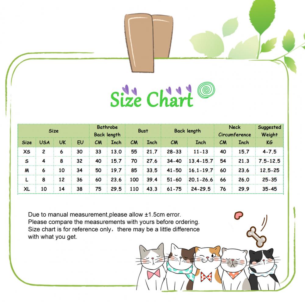 Размер: XS, длина одежды: 33 см/13 ", обхват груди: 55 см/21,7", Длина спины: 28 см-33 см/11 "-13", обхват шеи: 40 см/15,7 "размер подойдет детям в возрасте от Вес: 4-7,5 кг (прибл.)