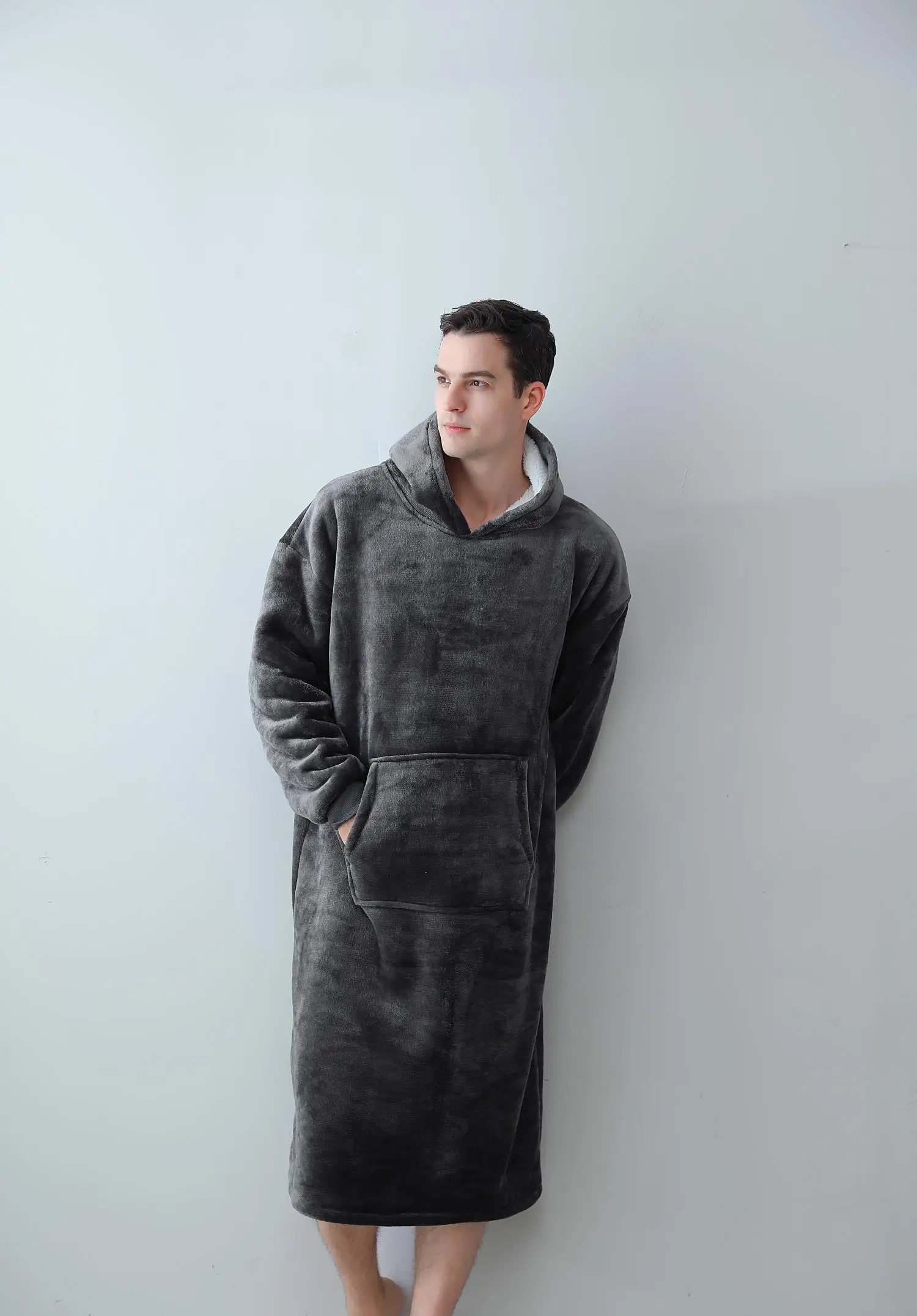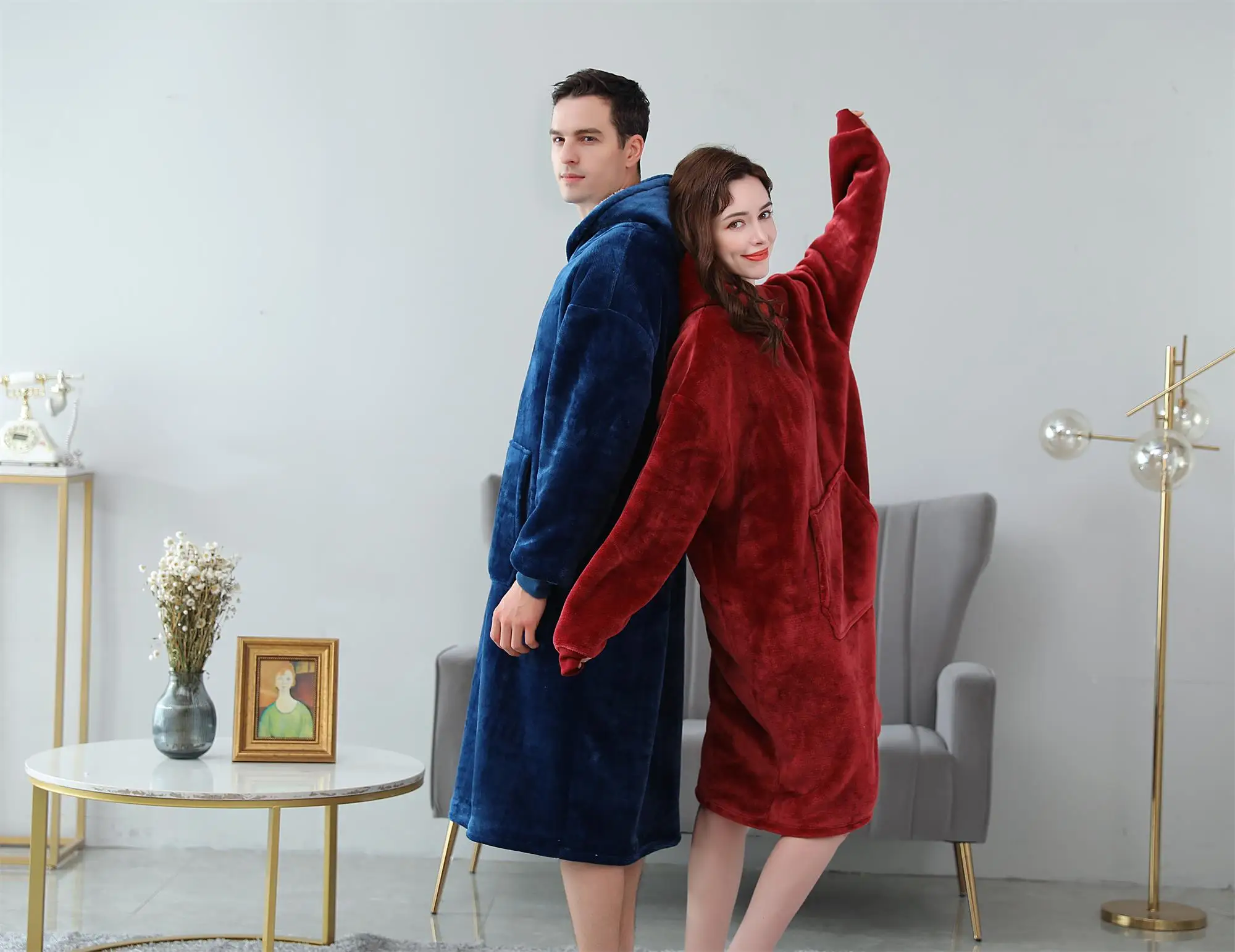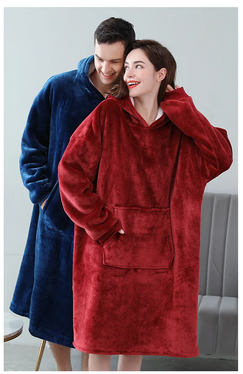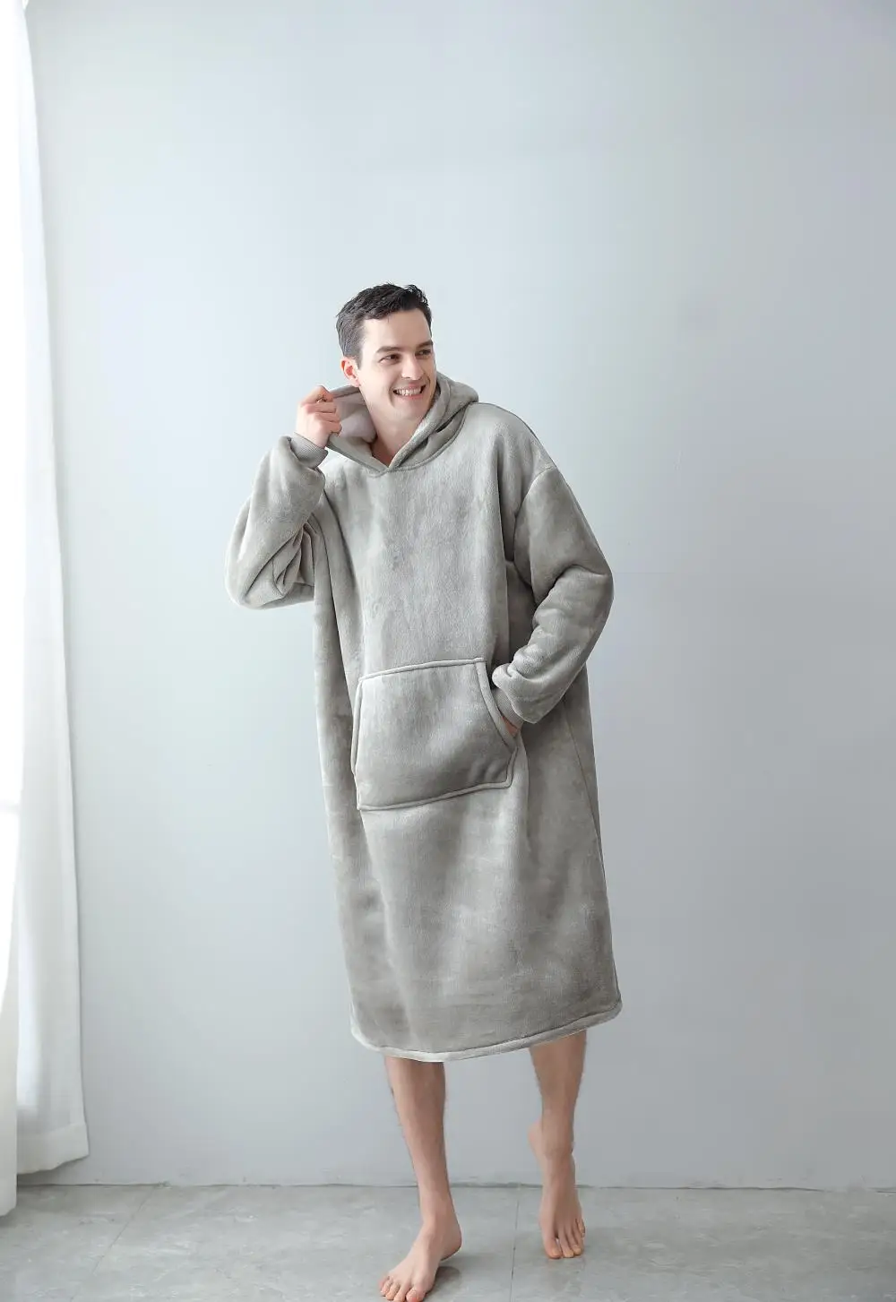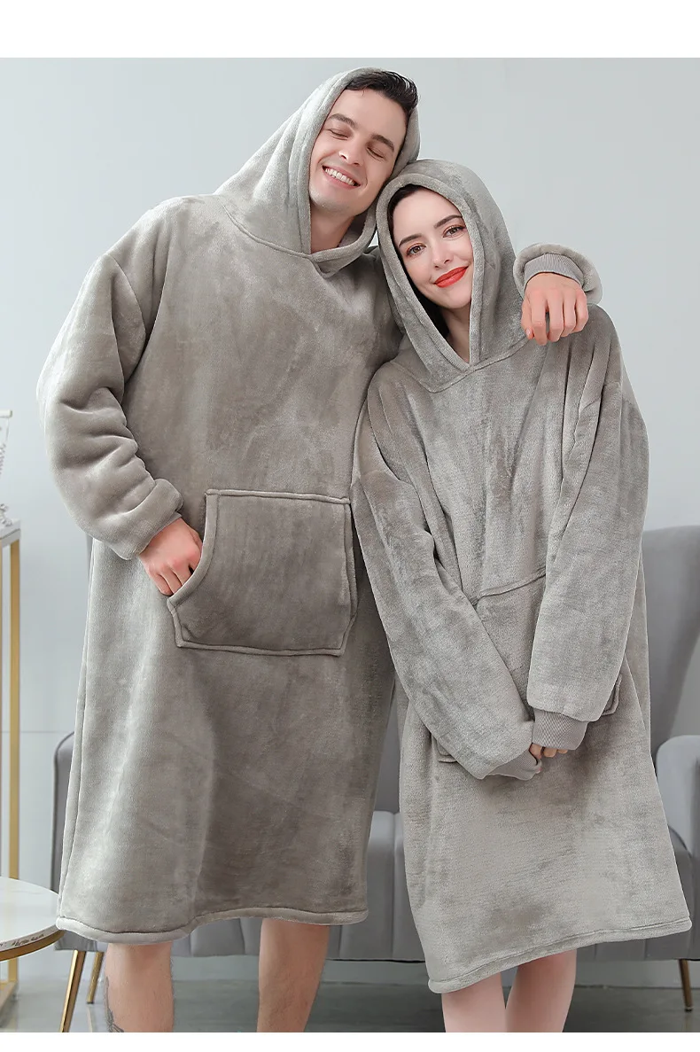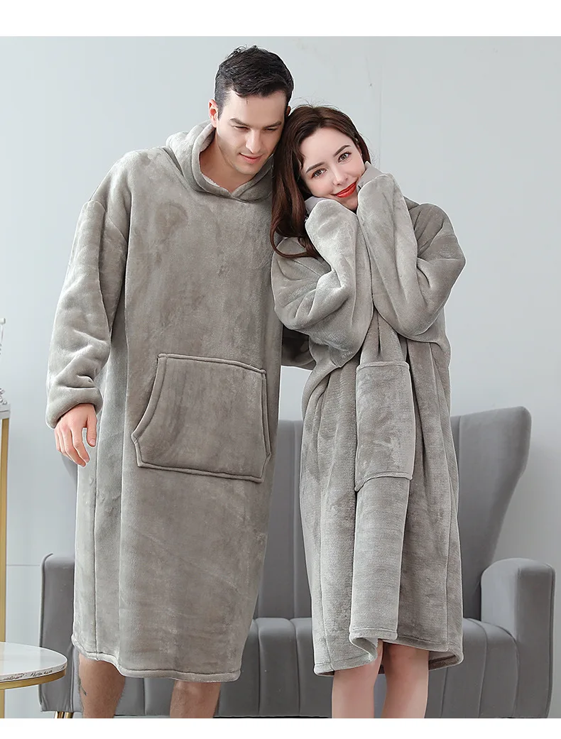 Kwyaster Свободная Женская Мужская Ночная рубашка с капюшоном зимний теплый халат для влюбленных домашний халат мягкая ночная рубашка с карманом