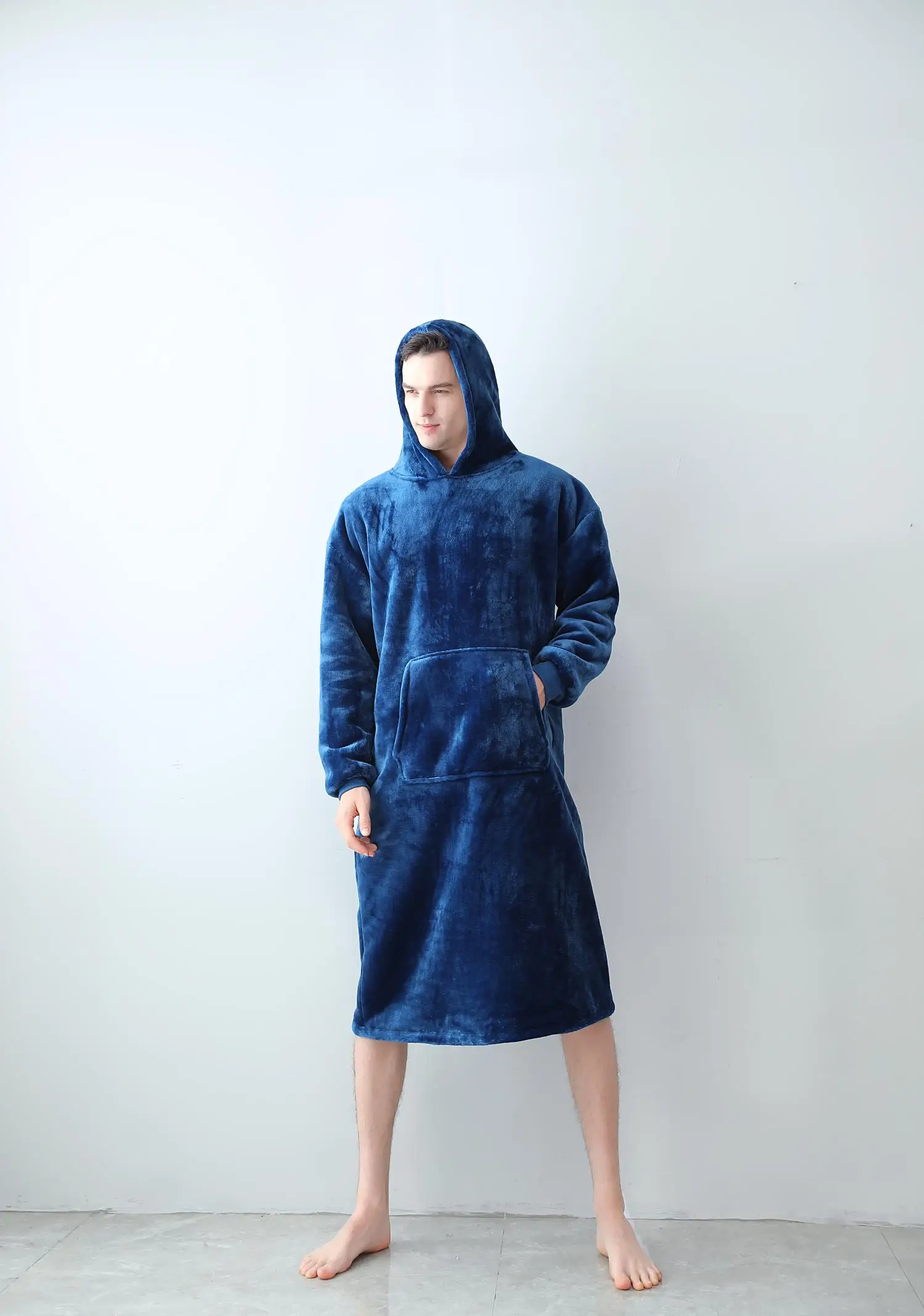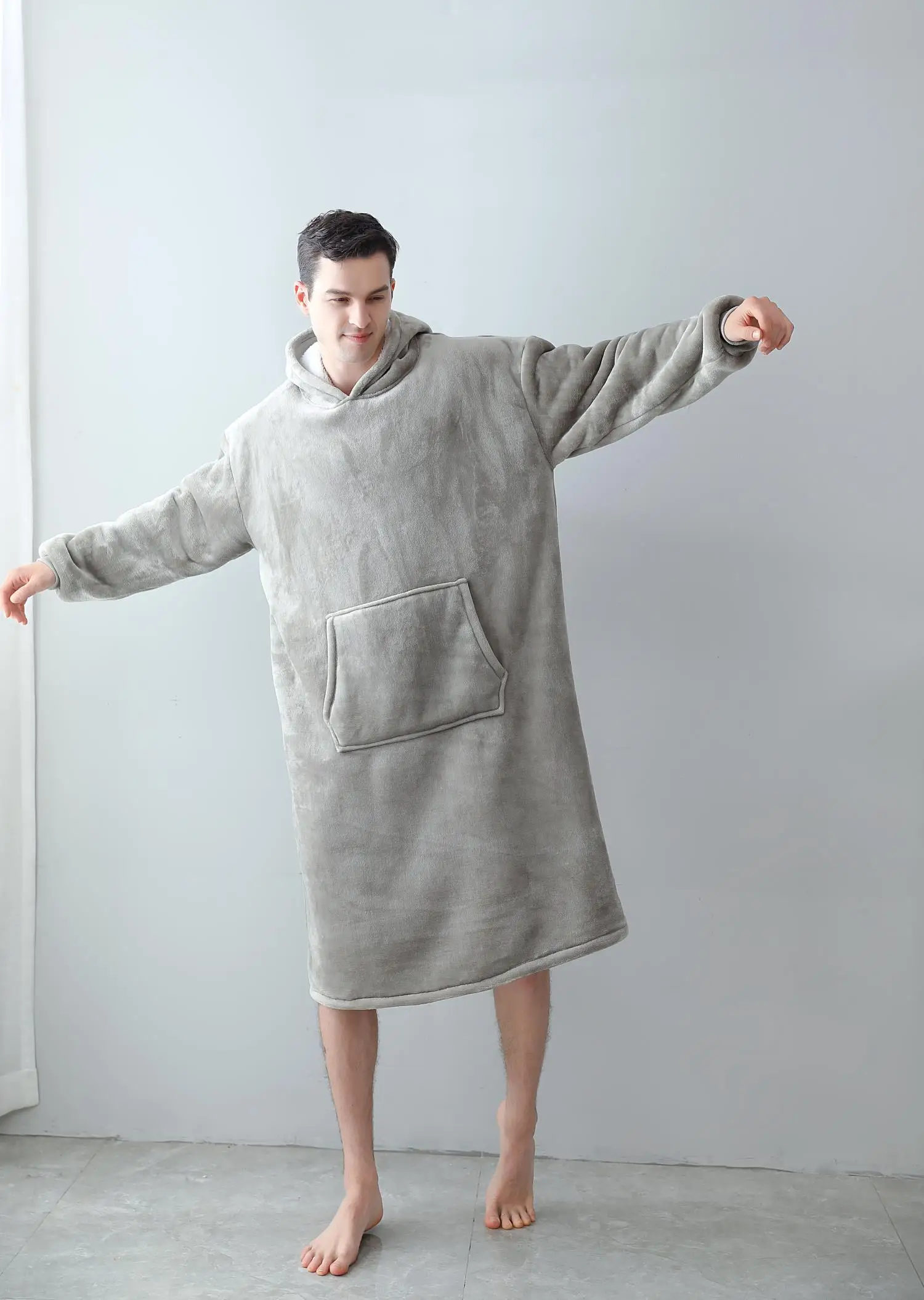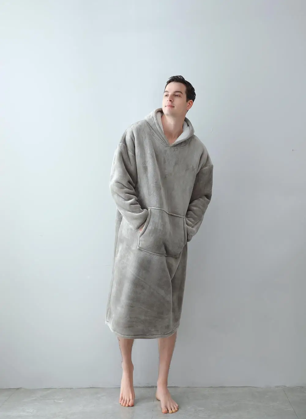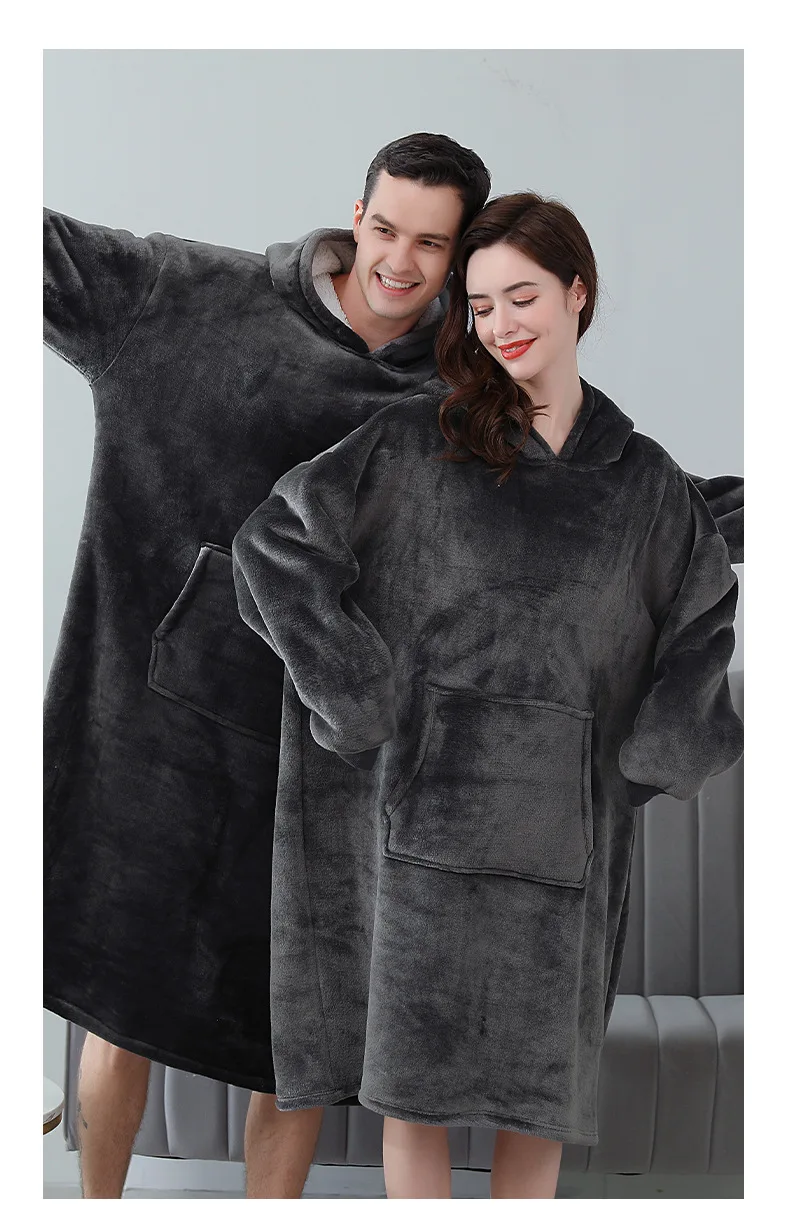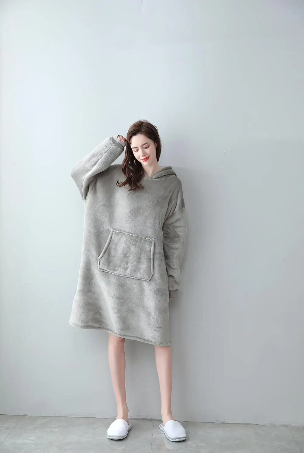 Kwyaster Свободная Женская Мужская Ночная рубашка с капюшоном зимний теплый халат для влюбленных домашний халат мягкая ночная рубашка с карманом