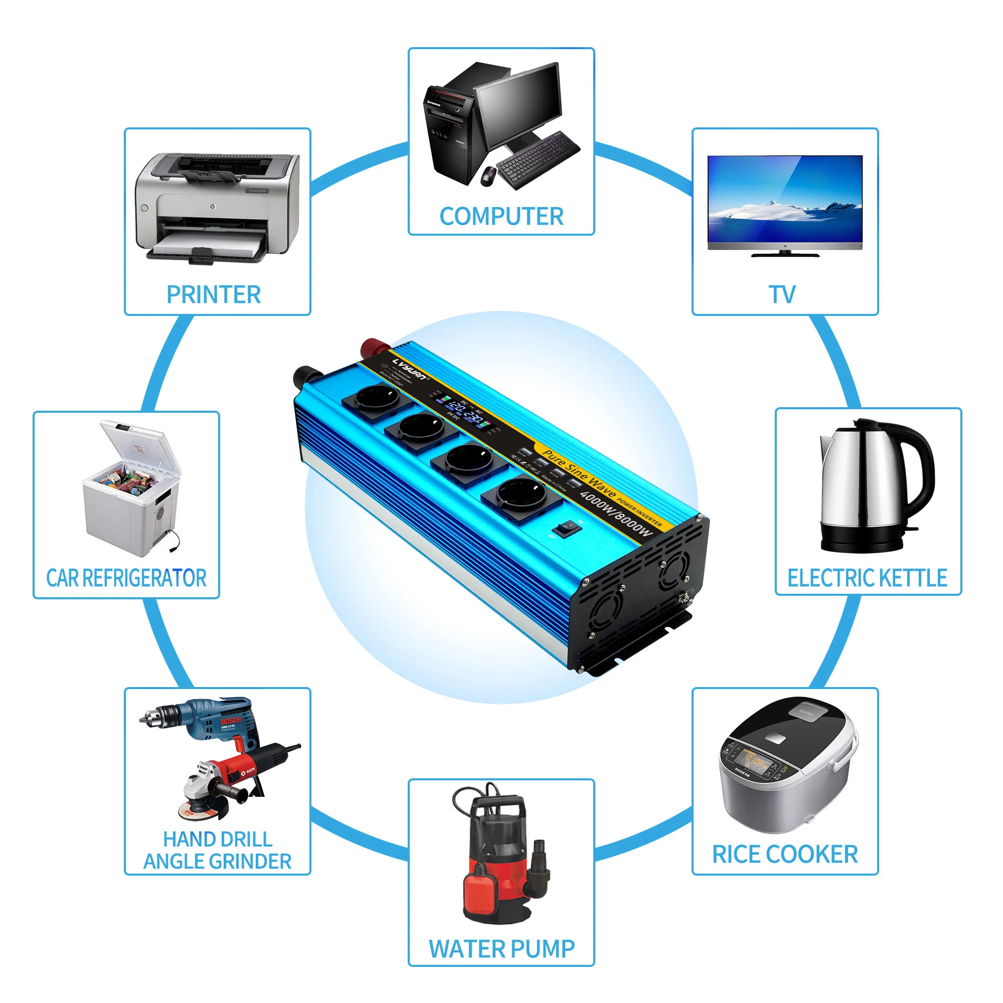 Отзывы о Новый автомобильный синусоидальный инвертор 4000 Вт/8000 Вт 12 В/24 В до 230 с 4 портами USB