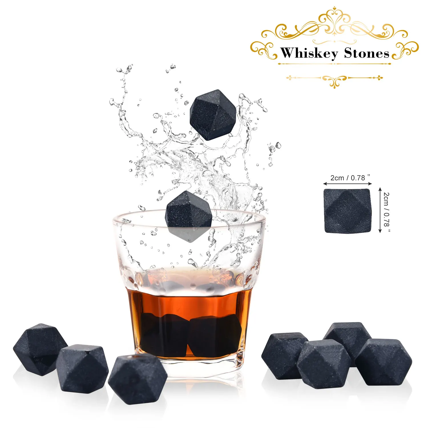 Гранитный камень для виски | Кубик льда для виски камень | Охлаждающие камни деревянная коробка и бархатная сумка, OEM коробка с логотипом